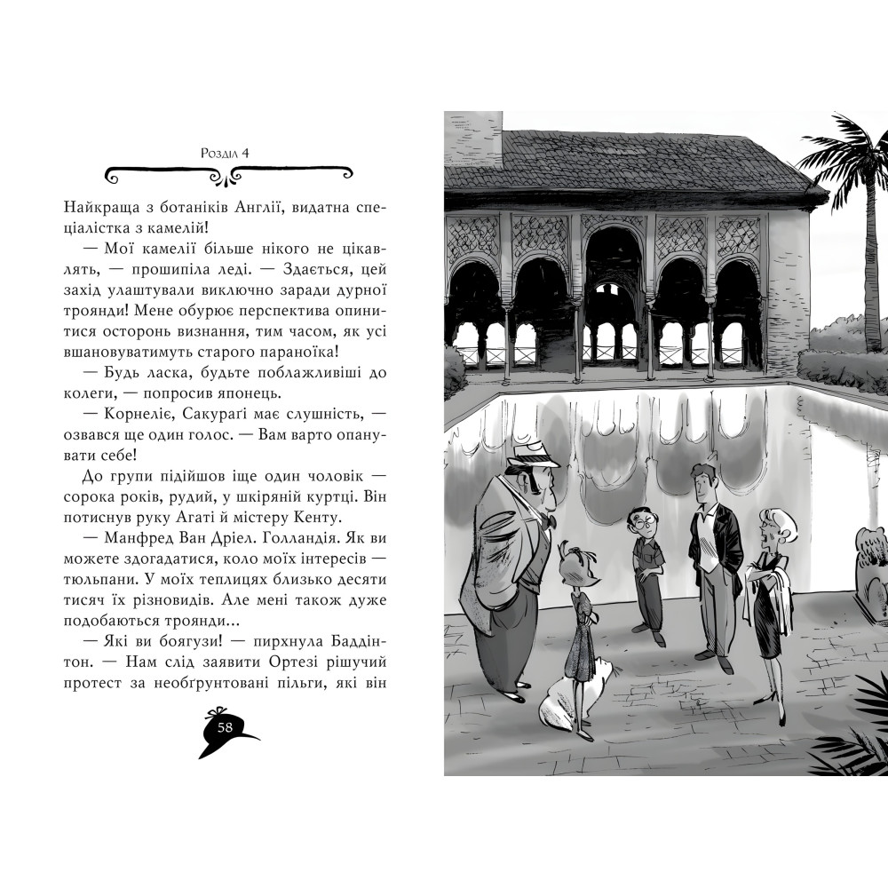 Наделенная изумительным чутьем и феноменальной памятью, Агата Мистери мечтает стать писательницей, но это в будущем. Пока же она – отличный детектив! Вместе с простоватым кузеном Ларри, студентом школы детективов, она путешествует по миру, разгадывая самые запутанные тайны. Помогают им преданный мажордом, пакостный сибирский кот и уйма странных родственников. Расследование в Гранаде (Роза Альгамбры) Гранада, Испания. Ларри и Агата отправляются туда, чтобы выполнить, казалось бы, простейшую задачу: обеспечить охрану Розы Альгамбры, редкого цветка, выставленного на Международной ботанической ярмарке. Но те, что имело чудеса развлекательной поездкой по достопримечательностям, превратилось в серьезную рабочую командировку. Удивительная роза похищена, и юные детективы вместе с дядей — танцовщиком фламенко — должны раскрыть вероломное преступление...
