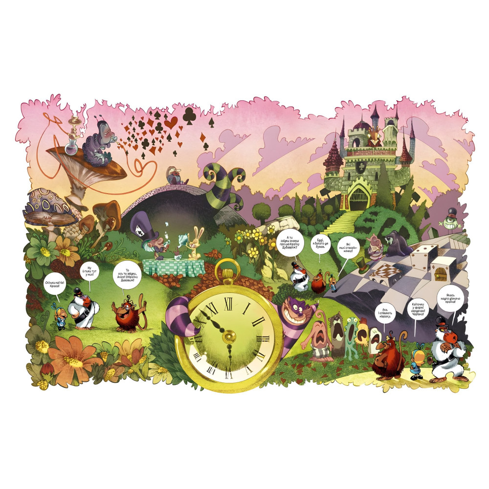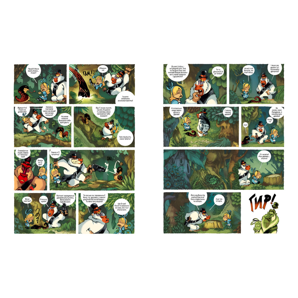 История, расширяющая воображение! Потрясающий дуэт харизматичного сценариста Тебоу и всемирно известного художника-комиксиста Николя Керамидаса, который много лет работал в Disney. Сочетание их талантов открывает петлю над новыми приключениями Алисы, которую все привыкли представлять только в Стране Чудес. Но с этим комиксом стереотип исчезнет навсегда! Алиса оказывается в дупле дерева среди джунглей и теряет память. Растеряна и смущена, она встречает обезьян, которые принимают ее за Тарзана… К счастливой случайности, Алису предупреждает об опасности новый друг. Чтобы избежать зубов тигра - владельца страны обезьян - Алисе нужно срочно бежать. Фантастические приключения, которые заставят детское воображение выйти за рамки обычного. Невероятно смешные диалоги и забавные персонажи не оставят равнодушным ни одного ребенка. Огромная доза позитива гарантирована! Сюжет доказывает, что юмор, взаимоподдержка и храбрость помогают выбраться из любой передряги. Главная идея истории: нет ситуаций, с которыми нельзя справиться, а те герои, которые вызывают страх в начале, впоследствии могут оказаться хорошими и отважными. Динамический ход событий к последней странице не отпускает детское внимание.
