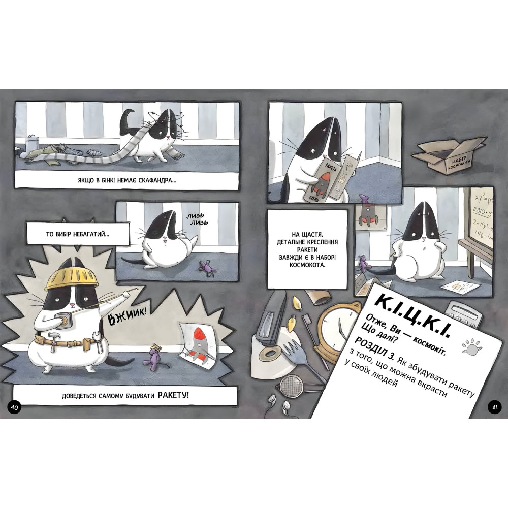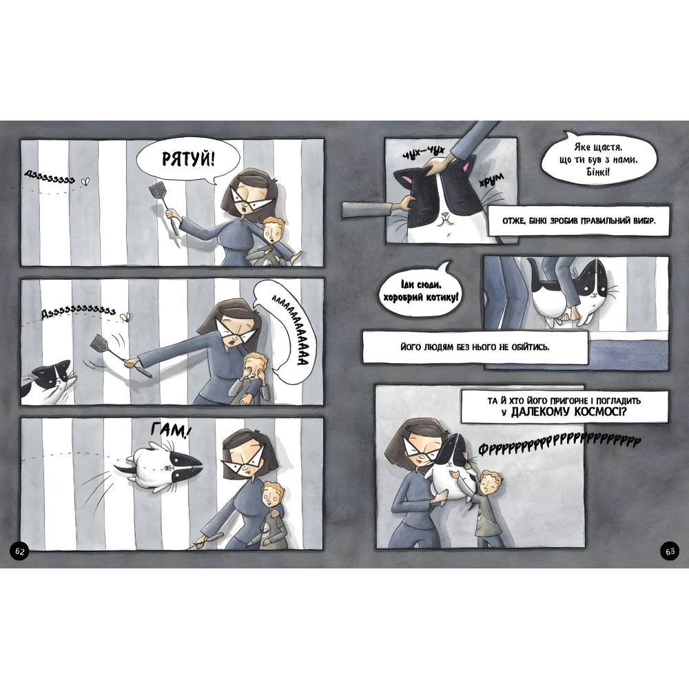 Бинки – космок, так он думает о себе. На самом деле он домашний котик, никогда не покидавший домашней «космической станции». Он планирует отправиться в открытый космос (на улицу), исследовать неведомые миры (двор) и дать бой пришельцам (насекомым). Бинки начинает строить ракету и готовится к галактической экспедиции. И только собравшись в полет со вторым пилотом Тедом (игрушечной мышкой), Бинки понимает, что забыл кое-что важное — и это не кошачий лоток для условий невесомости…