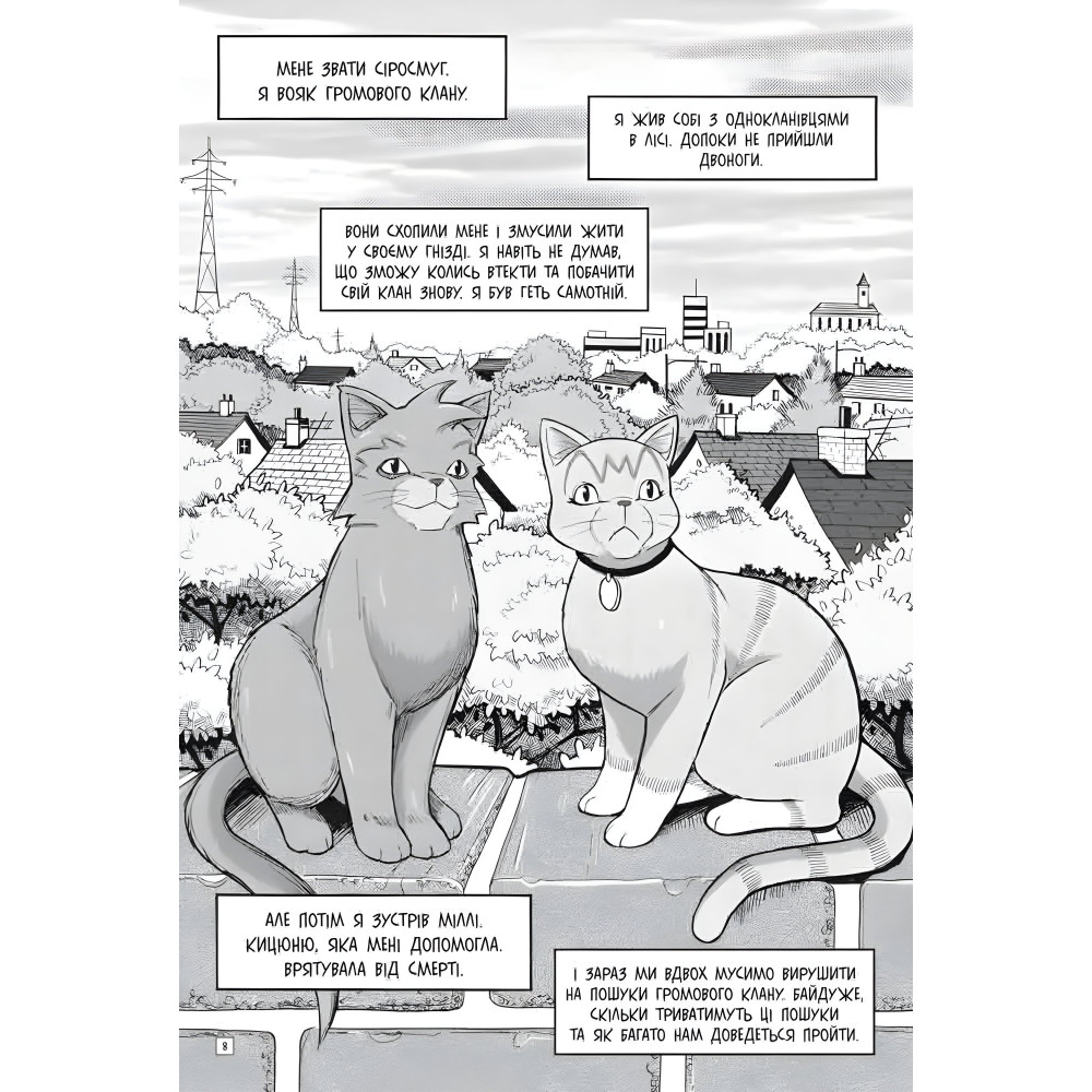 Путь продолжается. Чувствуйте себя, враги! Отправившись на поиски Громового клана, Сиросмуг и Милли обнаруживают, что выбраться из двуножного города не так просто, как им думалось. К тому же хрупкая кицюня на взгляд не способна жить в дикой природе. Только герои отыскали временное убежище, как вскочили в немалую передрягу — наткнулись на кошек чужого вражеского клана. Выйдет ли у Сиросмуга и Милли не потерять друг друга и осуществить общую мечту? И какие секреты скрывает новая подруга воина?