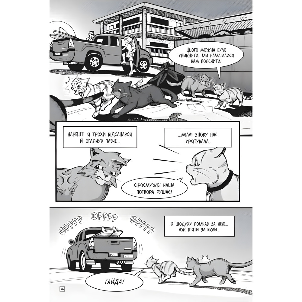 Мировой бестселлер от Эрин Гантер – теперь в мангах! Наконец Сиросмуг и Милли добрались до бывшего лагеря Громового клана. Но двуножьи чудища совершенно осквернили лес — остались сами бревна и грязи! Вояк опасается, что его одноклановцев уже нет... Но путь, по которому воины Громового клана пошли много месяцев назад, очерчены, несмотря на опасность, подстерегающую на каждом шагу. Не потеряются ли Сиросмуг и Милли в этой сверхтяжелой дороге? Выйдет ли у них добраться до Солнцепада?