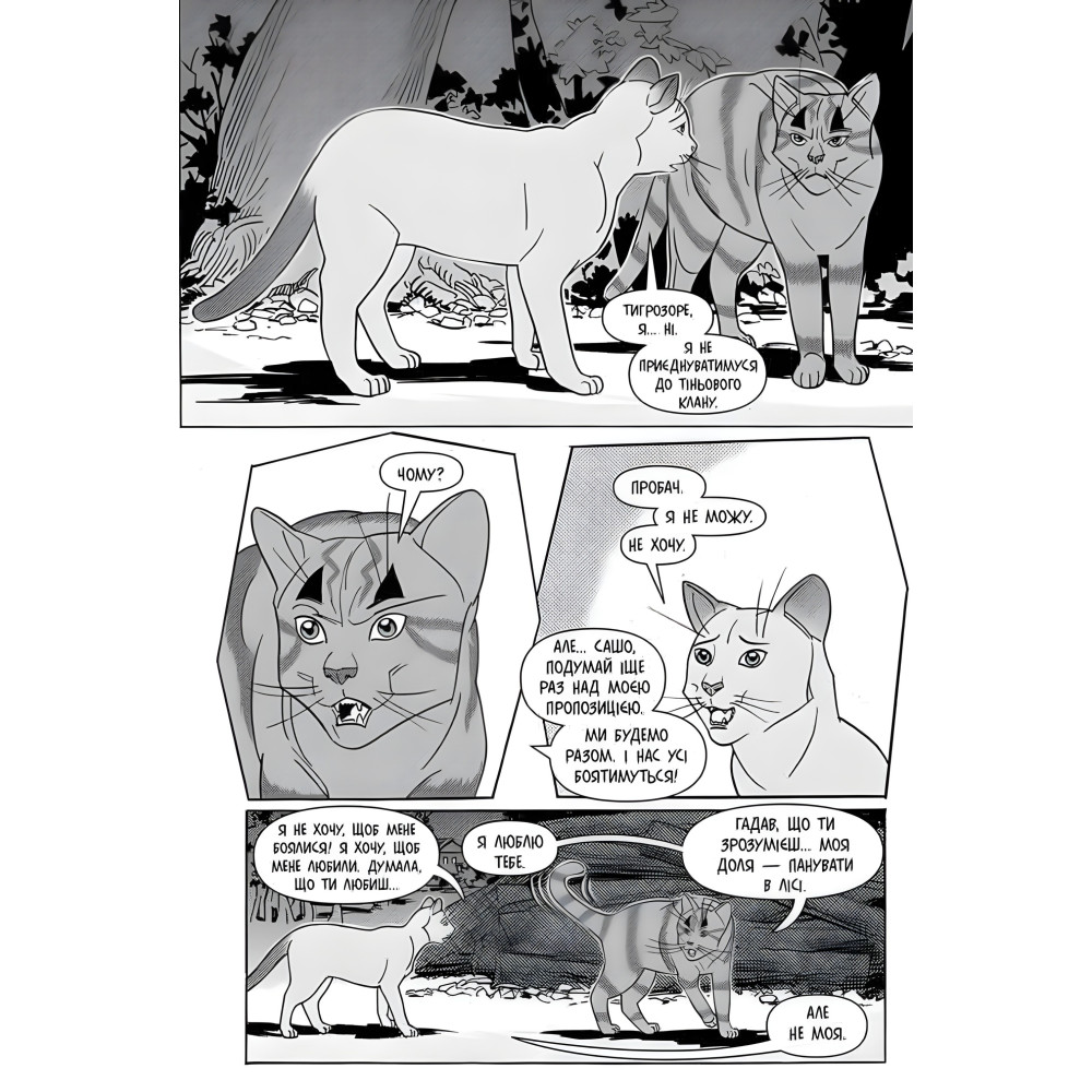 Мировой бестселлер от Эрин Гантер – теперь в мангах! Саша имела все, о чем может мечтать кицюня: хорошие хозяева, которые заботились о ней днем, и свободные ночи, когда можно изучать окружающие территории. Но счастливым дням пришел конец, поэтому Саша вынуждена покинуть дом и поселиться в лесу. Встретившись с Тигрозиром, она влюбляется и начинает думать, что лучшим для нее будет присоединиться к воинам. Но у Тигрозора много тайн, вспыльчивый нрав и не очень понятные намерения. Каково его настоящее лицо? И можно ли ему доверить свою жизнь? Почему следует читать: Серия приключенческих романов-фэнтези, читающих подростки и их родители. У книг серии есть ценители в Англии, США, Германии, Франции, Испании, Италии, Польше, Чехии, Японии, Китае… — более 30 000 000 читателей и фанов во всем мире!