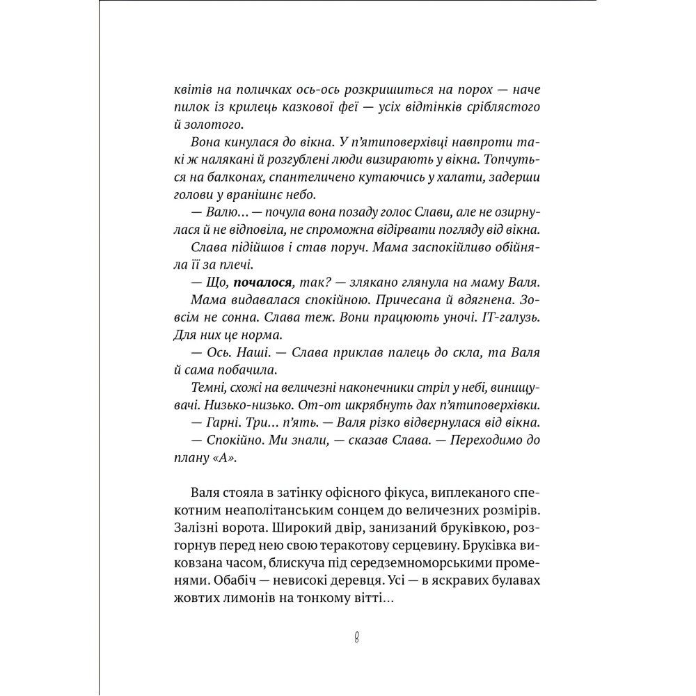 Уютный Валин мир разрушила война. Она временно проживает в Италии, но свыкаться с новой жизнью на гостеприимных южных землях ей непросто. Так же чувствуют себя братья Давид и Влад. Подростки вместе сортируют гуманитарную помощь для Украины, познают мир вокруг, испытывают себя и его на прочность… И все время думают о ДОМ, родителях, родных «панельках», акациях во дворе. К временно переселенным украинцам в Италии относятся приветливо. Валя даже обретает «бест» подружку. Но всегда ли за любезностью и готовностью обсуждать откровенные темы скрывается настоящая дружба? Когда ты уязвим, очень легко ошибиться и довериться не тому человеку. Перед вами многослойная история о травмировании войной, отстаивании собственных границ, буллинге и отношениях. Отношения между родителями и детьми на расстоянии тысяч километров. Отношения между подростками, нуждающимися в самовыражении и любви