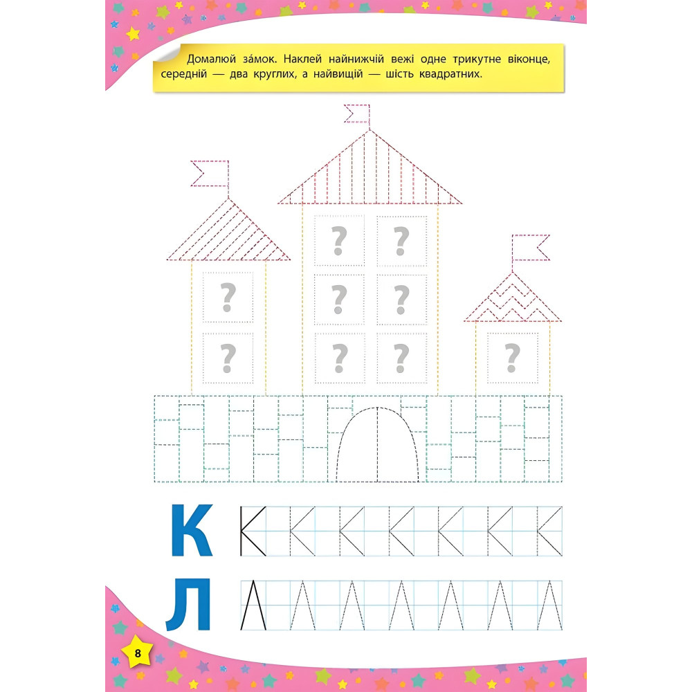 Данная книга поможет вашему ребенку научиться писать печатные буквы украинского алфавита, рисовать разные типы линий, формы и орнаменты, штриховать изображения и рисовать предметы по пунктиру и ячейкам. Книга содержит простые и интересные задачи для развития воображения, логики, мышления и мелкой моторики кисти. Ответ на каждое задание малыши смогут узнать среди 117 наклейок, содержащихся в каждой книге. Это издание предназначено для совместной работы детей в возрасте от четырех лет с родителями.
