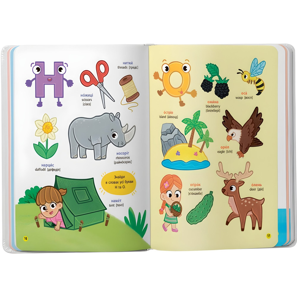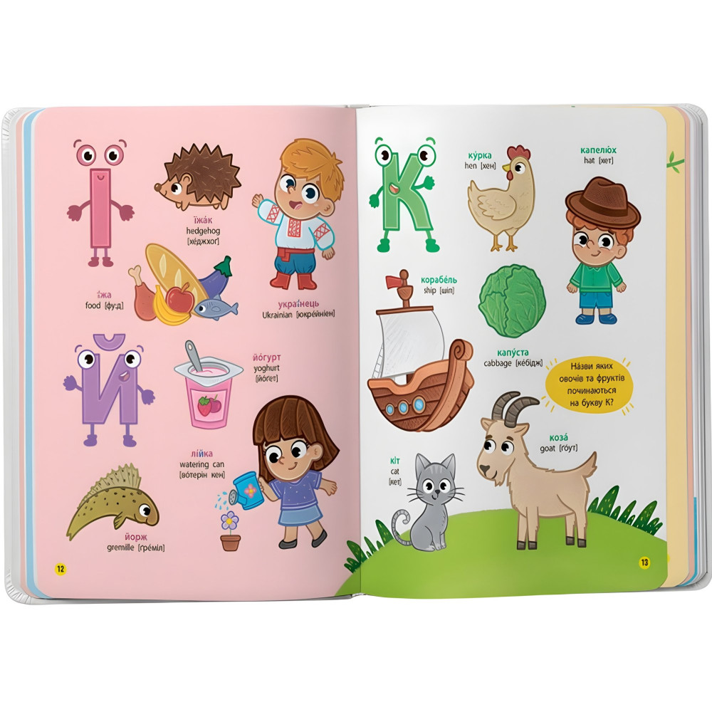 «150 первых слов. Алфавит» — это красочная книжка-картинка, которая поможет малышу в увлекательной форме изучить украинский алфавит, расширить словарный запас и ассоциировать слова с яркими изображениями. На каждую букву представлены несколько простых и понятных слов, сопровождающихся цветными иллюстрациями. Это способствует зрительному запоминанию, развитию речи и внимания в раннем возрасте. Навыки, которые развивает книга Распознавание букв украинского алфавита. Знакомство с первыми словами и понятиями. Развитие речи, памяти, логики. Формирование ассоциативного мышления. Подготовка к чтению и обучению в школе. Преимущества: Большие иллюстрации для каждого слова. Компактный формат и плотная бумага, удобная для детских рук. Четкие подписи и простая подача информации. Создана специально для малышей, только начинающих говорить