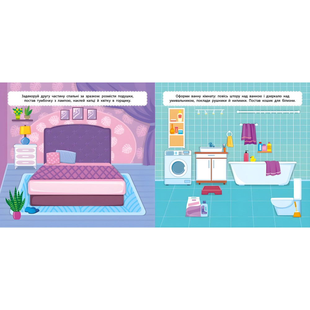 Вместе с этой книгой ребенок почувствует себя настоящим декоратором и сможет с помощью наклейок воплотить в жизнь свое видение дизайна дома. На страницах книги малыш расставит мебель в прихожей, украсит экзотическими цветами, фото и посуду гостиную и столовую, украсит интересными игрушками и невероятными декорациями спальни, сделает удобной ванную комнату и уютно обустроит галерею.