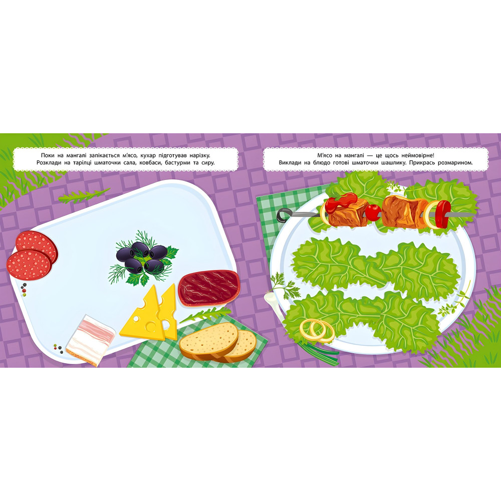 Вместе с этой книгой ребенок попадет на пикник и сможет с помощью наклеек вместе с поваром готовить перекусы на природе, блюда на мангале, невероятные смузи и необычные десерты. Издание содержит большие тематические иллюстрации блюд и наклейки для их декорирования. Книга будет способствовать развитию фантазии, речи, внимания и мелкой моторики пальцев рук.