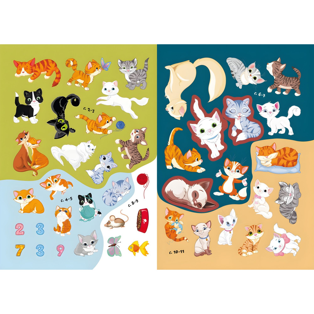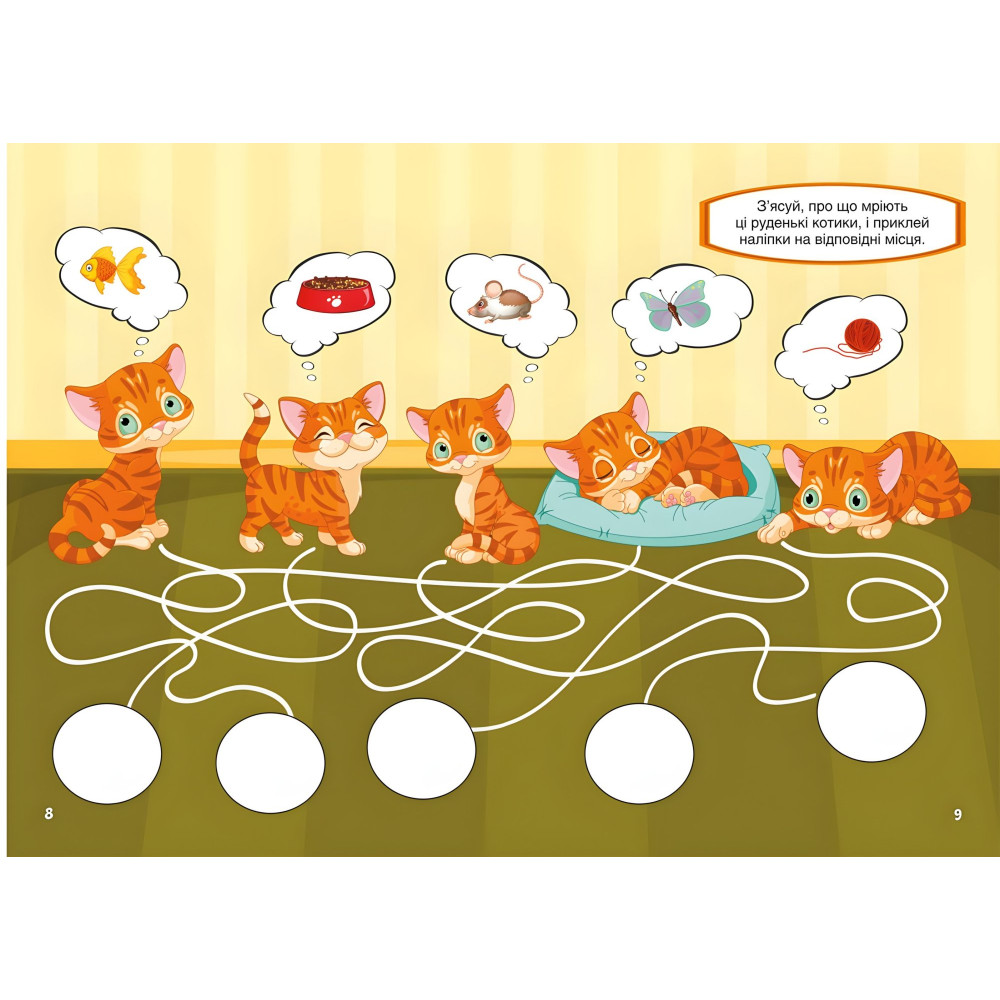 Скорее загляни в нашу книгу, чтобы познакомиться с милыми котиками-муркотиками. Тебе предстоит встреча с забавными пушистиками и много интересных задач. Выполнить их помогут 44 красочных развивающих наклейки. За подсказку тебе будут давать указанные рядом с ними номера страниц.