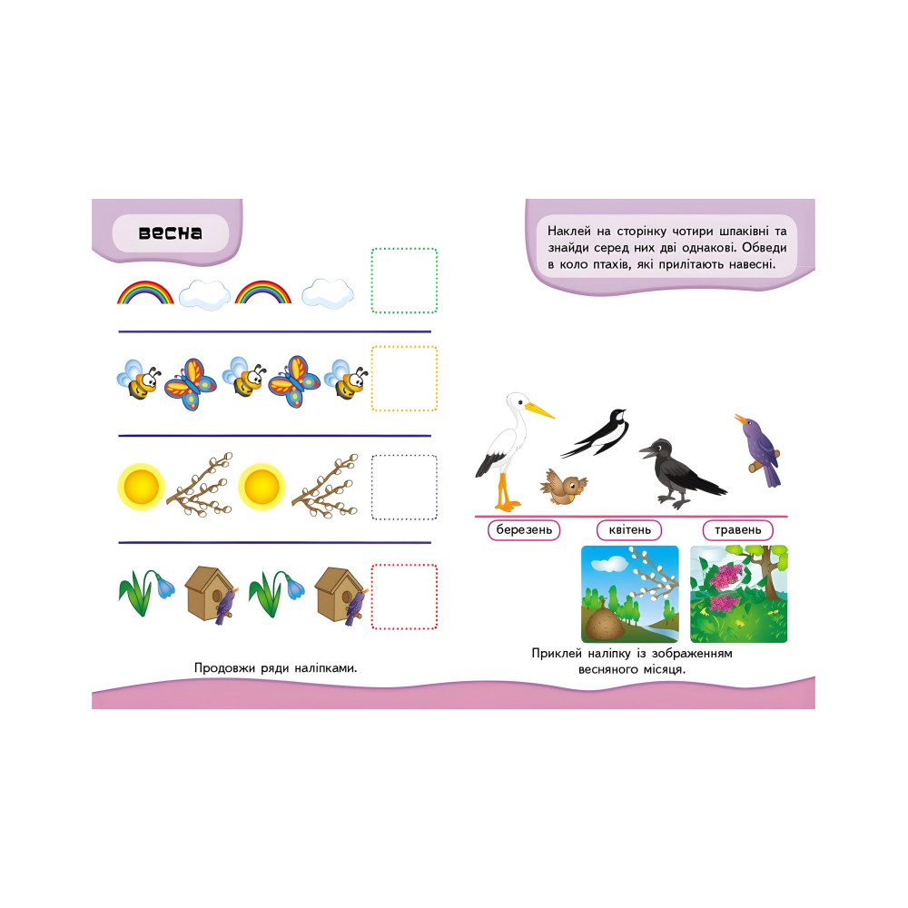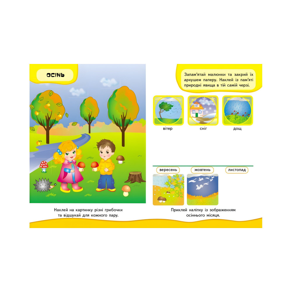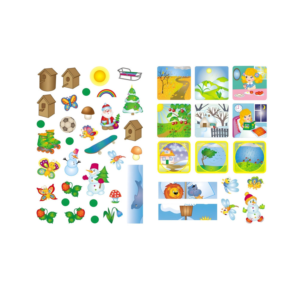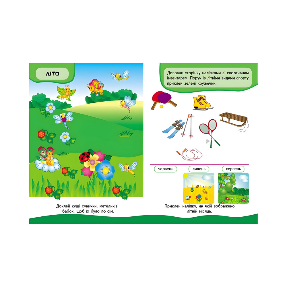 Времена года для детей 3-5 лет воспринимаются и впервые познаются, прежде всего, на уровне эмоций. Они же, в свою очередь, эти ранние детские эмоции связаны с яркими, красочными образами, пришедшими в их жизнь из книжных иллюстраций. Книга с развивающими наклейками сюжетами, символизирующими зиму, весну, лето, осень, чтобы ребенок четко понял для себя этот извечный годовой цикл природы.