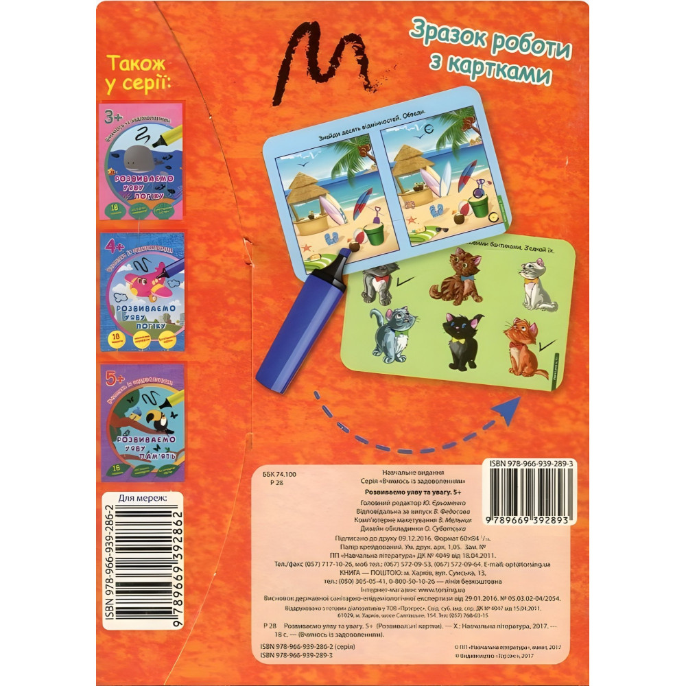 Данный комплект ламинированных карт «Развиваем воображение и внимание 5+» из серии «Учимся с удовольствием» подготовлен специально для детей от 5 лет. Задания разработаны в соответствии с возрастом вашего малыша и в соответствии с рекомендациями опытных методистов. В этих многократных карточках собрано 18 заданий.