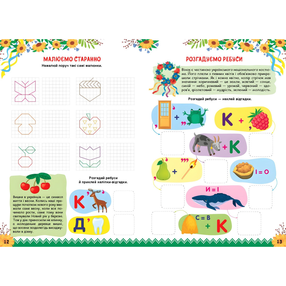 «Любовь к Родине, как и к семье, появляется и воспитывается с детства. необычные задачи на украинскую тематику, рассчитанные на детей от 5 лет, — кроссворды, загадки, ребусы, шифрограммы, судоку, раскраски, лабиринт, задачи развития внимания, улучшения дикции и тренировки памяти. ¶¶Издание предназначено для детей старшего дошкольного возраста.
