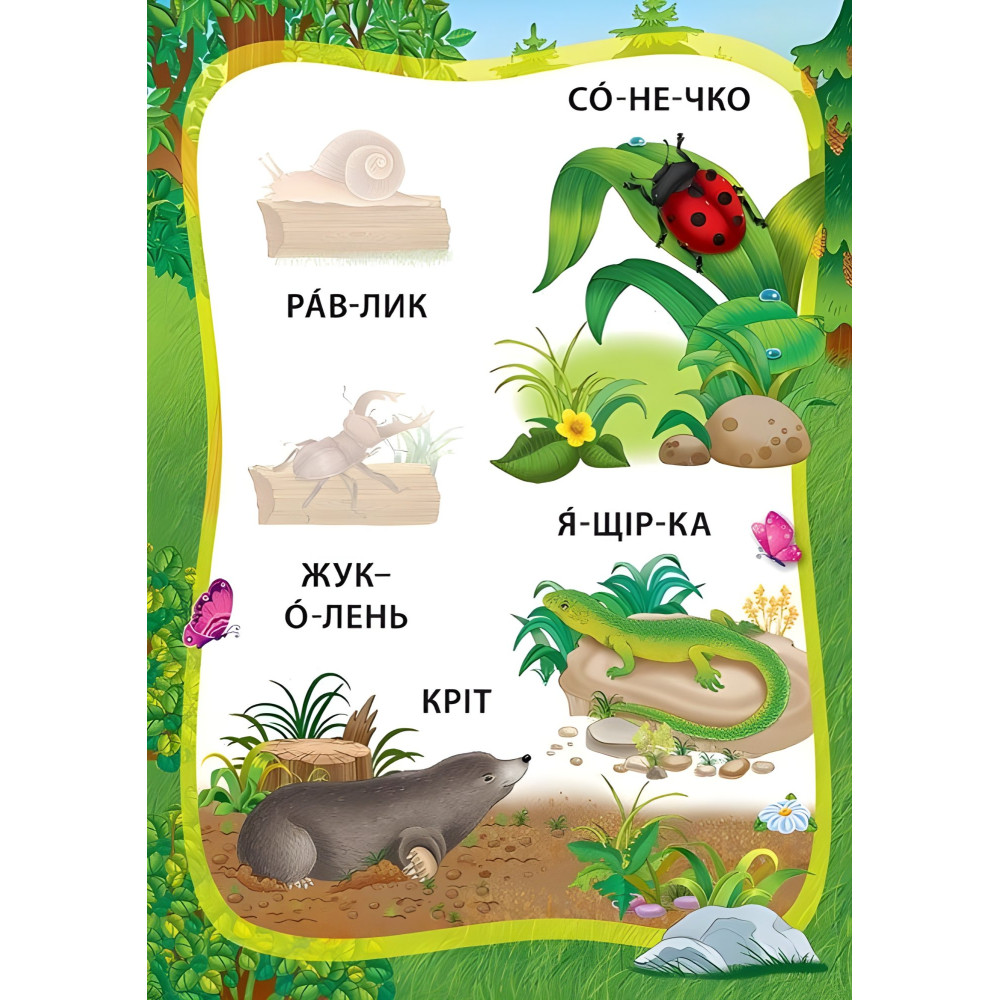 Эта книга поможет малышам научиться читать по слогам и есть имя названия лесных животных, насекомых и растений, развить мелкую моторику пальцев рук, зрительную память и внимание. Издание содержит яркие иллюстрации, тематические наклейки и подписи к каждому рисунку. Кроме того, слова разделены на слоги и напечатаны удобными для восприятия заглавными буквами. Все это сделает сложный процесс чтения легким и увлекательным.