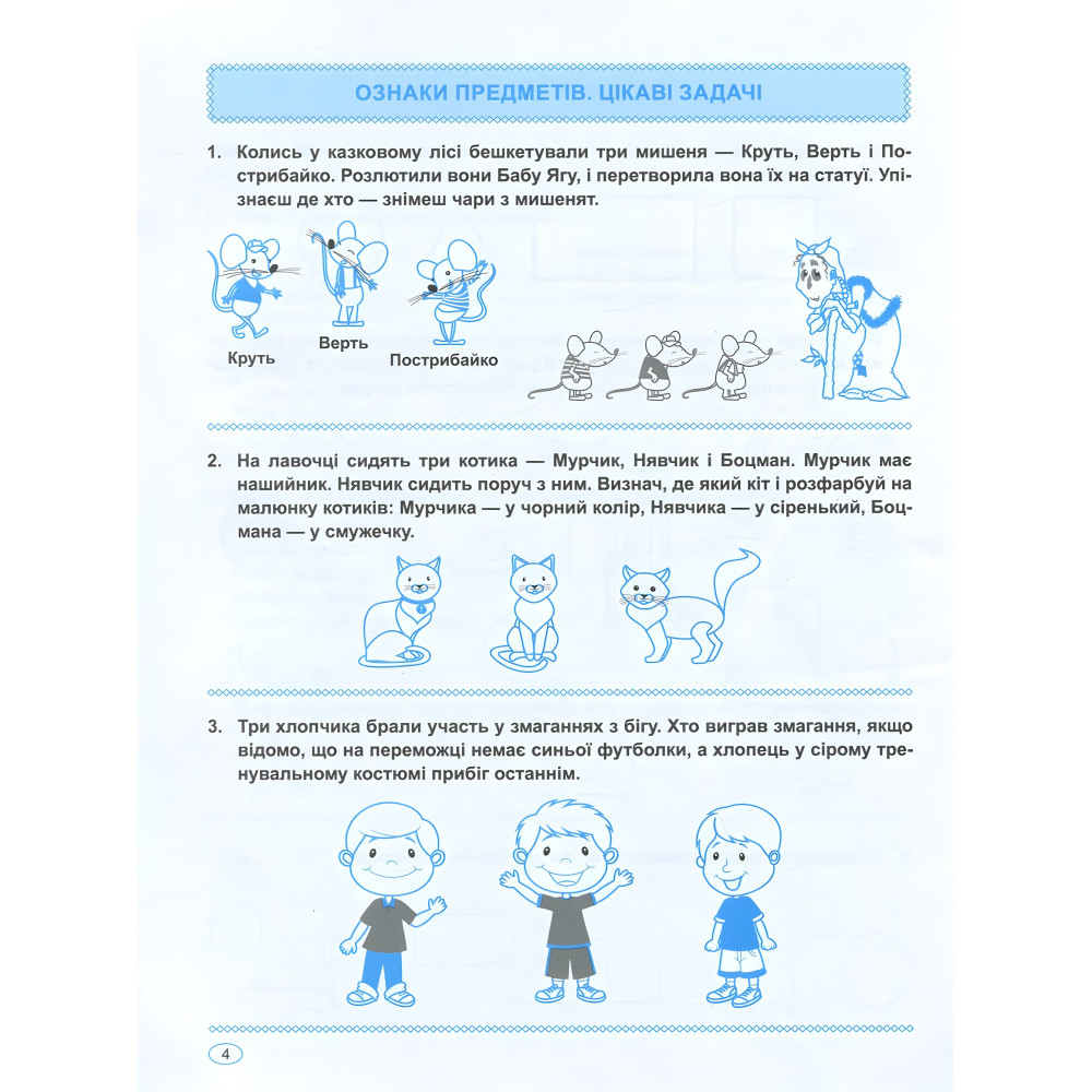 Задачи этого руководства направлены на развитие логического мышления, индивидуальных познавательных способностей ребенка. С помощью предложенных упражнений ребенок научится сравнивать, сопоставлять и синтезировать информацию, оценивать свои и чужие мнения, доказывать и проверять все выдвинутые предположения и выводы, предусматривать последствия. В обучении важен сам процесс размышления. Дети от природы имеют гибкое мышление и незаурядную интуицию, они быстро предлагают способы решения задач. Не торопитесь подсказывать. Вы, в случае необходимости, можете направить их соображения наводящими вопросами. Если у малыша все удается не забывайте хвалить ребенка. Помните, что обучение должно вызывать только положительные эмоции, не перегружайте ребенка, учитывайте индивидуальные особенности малыша.