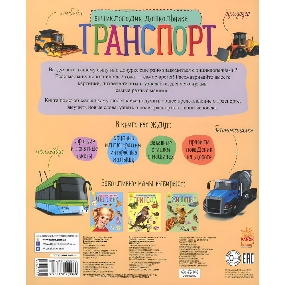 Эта книга подойдет даже двухлетнему малышу! Энциклопедия дошкольника. Транспорт» - это красочная познавательная книга для детей, которая знакомит малышей с разными видами транспорта. В ней представлены интересные факты, большие иллюстрации и простые объяснения, подходящие для дошкольников. Книга помогает развивать словарный запас и любознательность.