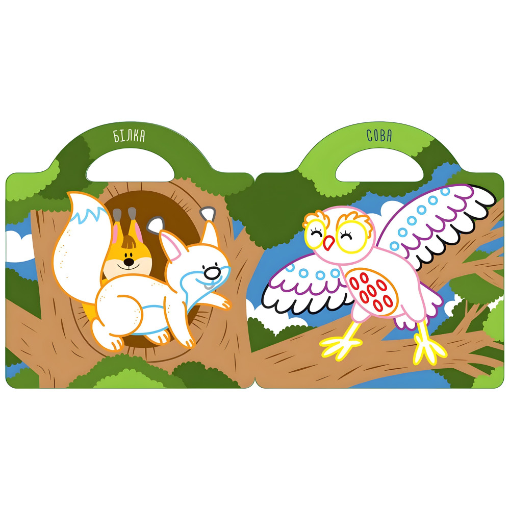 Яркие раскраски-сумочки – великолепны для развлечения и развития мелкой моторики. Книги с большими рисунками, красочные и красивые, помогут изучить цвета. Ребенок потренируется аккуратно разрисовывать изображение. А еще охотно познакомится с удивительными животными и интересной техникой. В процессе рисования можно устроить множество игр: на знание животных или машин, наблюдательность, умение сосчитать.