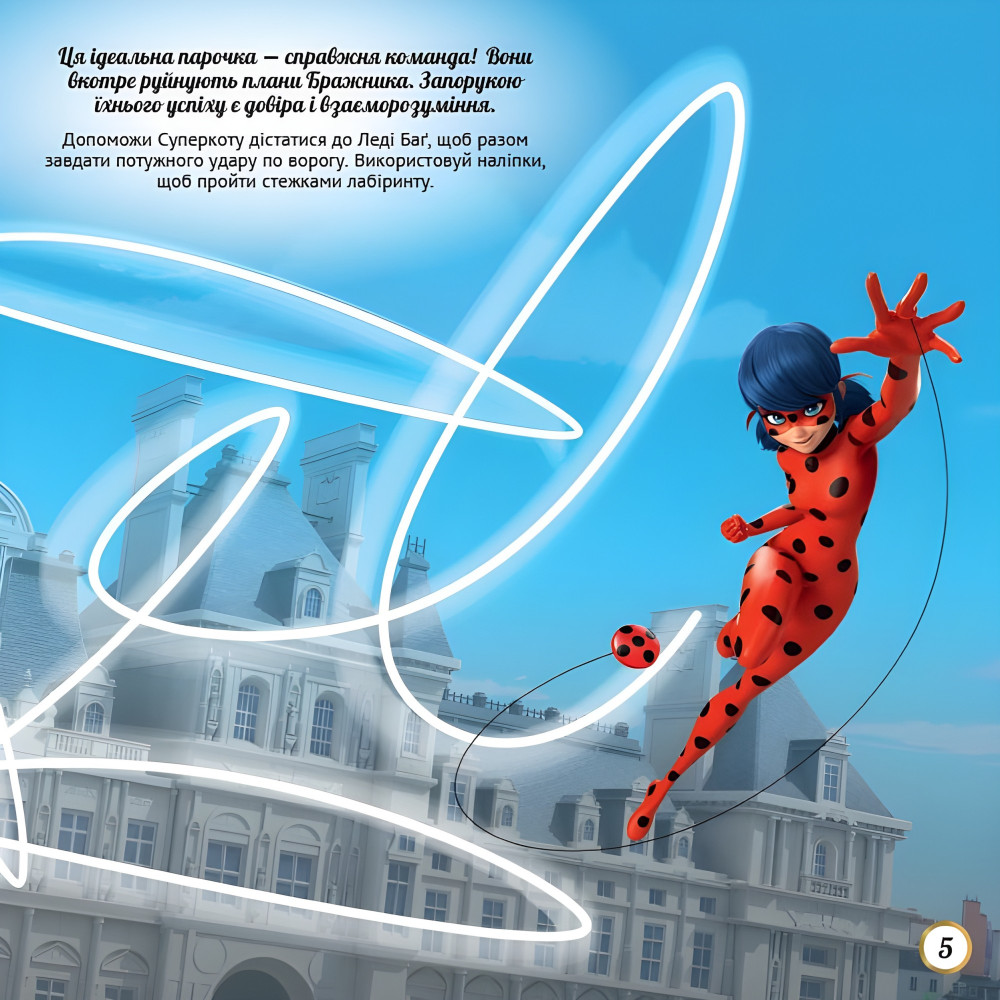 Окунись в увлекательный мир лабиринтов вместе с персонажами мультсериала "Леди Баг"! Помоги любимым героям найти выход из лабиринтов с помощью ярких наклейок. Присоединяйся, твои любимцы не проложат путь без твоей помощи!