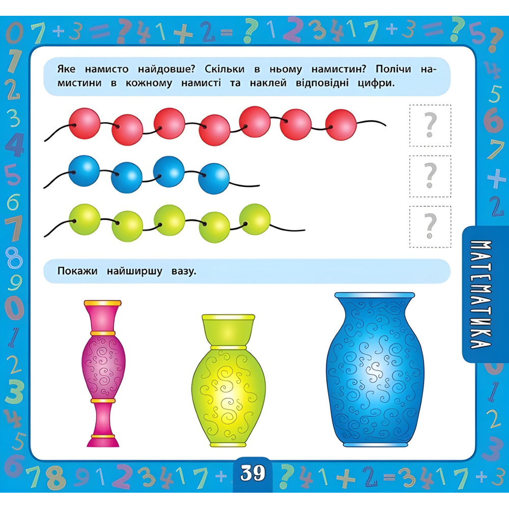 С этой книгой ваш малыш познакомится с цифрами и поупражняется в цифре, научится называть буквы украинского алфавита, распознавать их и совмещать в слоги и слова. излишнее или противоположное по содержанию, познакомится с понятиями «широкий и узкий», «длинный и короткий», «слева и справа». Также малыш научится рисовать разнообразные линии, фигуры и узоры по пунктиру и самостоятельно, потренируется штриховать и рисовать по образцу. Издание предназначено для совместной работы детей от трех лет с родителями.