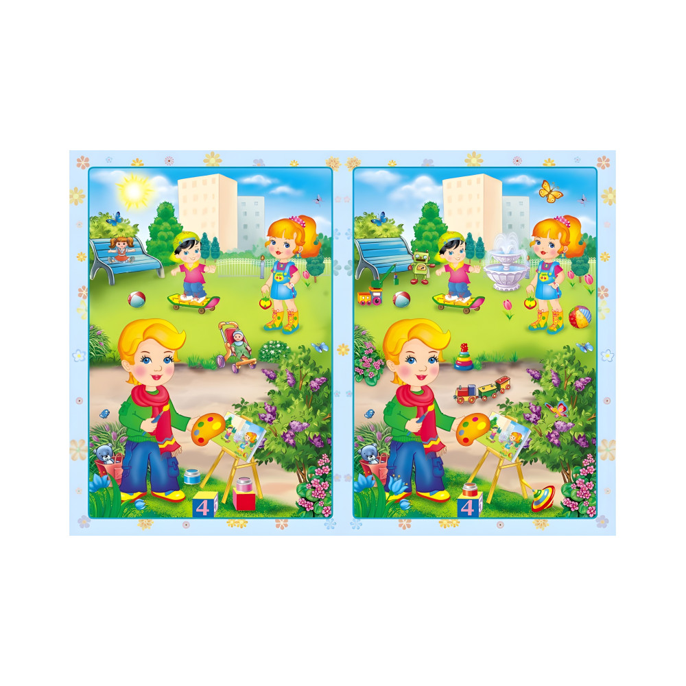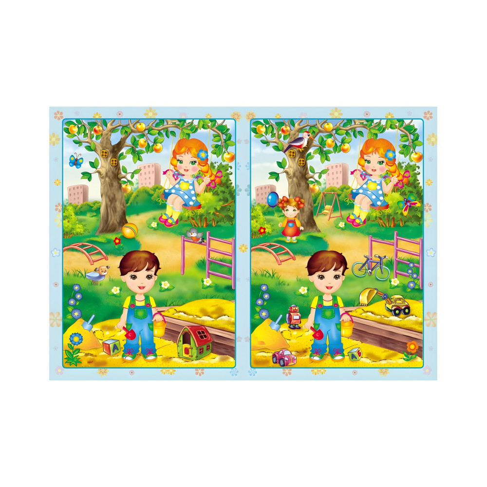В этой небольшой, но очень практичной и удобной для занятия яркой книге — более 100 развивающих наклейок! Каждый разворот – увлекательная игра «Найди отличия и наклей». Книга интересна для ребенка тем, что на рисунках он будет играть в хорошие знакомые ему любимые игры. Хотя игра в книге с развивающими наклейками «Малыши» — не просто игрушка. Пригодятся и усидчивость, и внимательность. Наклейки надо клеить с обеих сторон разворота. Для этого следует внимательно сравнить все детали, затем наклеить недостающие фрагменты. Оба рисунка должны быть одинаковыми.