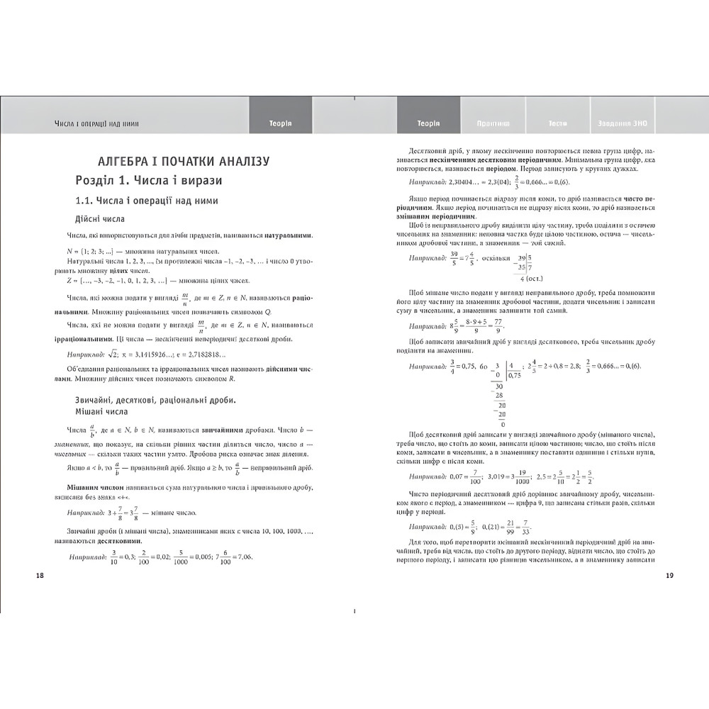 Учебно-практический справочник подготовлен в соответствии с действующей программой МОН Украины и программой ВНО по математике. Систематизированный и представленный в оригинальном формате, теоретический материал позволяет читателю найти краткий ответ на типовые вопросы важнейших испытаний – ВНО и ГНА. Практическая работа и выполнение тематических тестовых заданий, теста в формате ВНО помогут попробовать свои силы в знании предмета и умении им пользоваться. Предназначается для учащихся школ, абитуриентов, учителей, репетиторов по математике.