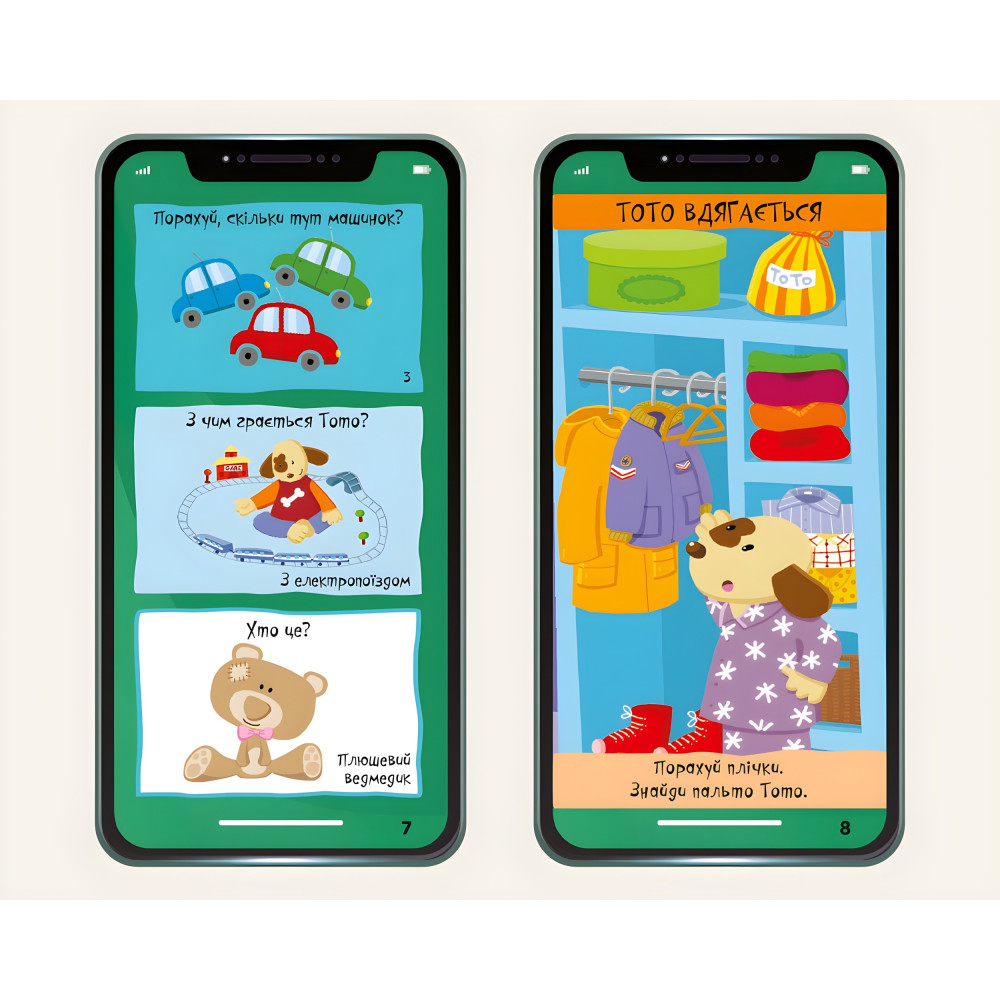 Более 200 вопросов для развития малыша! Правда, посетив сайт «АРТБУКС», вы ожидали увидеть смартфон? Игровое пособие «Мой смартфон» – прекрасная развивающая книжечка из серии «Маленькие умники». Разработанный по принципу образовательной технологии «эдьютейнмент» этот смартфон позволит превратить процесс знакомства с окружающим миром в веселую игру. Так что малыш будет учиться развлекаясь и будет развлекаться в процессе обучения! Вместе с собачкой Тото ищем, считаем и учимся называть все, что видим на улице, дома и на природе. Зачем мы выдали «Мой смартфон. 2-3 года. Учимся каждый день»: Это серия пособий, созданных специально, чтобы помочь дошкольникам изучать новые слова, считать, искать и сравнивать увиденное в игровой форме. «Мой смартфон» состоит из двух типов рисунков: Большие картинки – это сюжеты, которые можно рассматривать и о которых можно рассказывать. Маленькие рисунки – для игры «Что это? Кто это? и «Что делает?» Каждая тема начинается с большой иллюстрации. Сначала предложите ребенку описать то, что он видит. А затем к каждому из трех рисунков задайте вопрос.