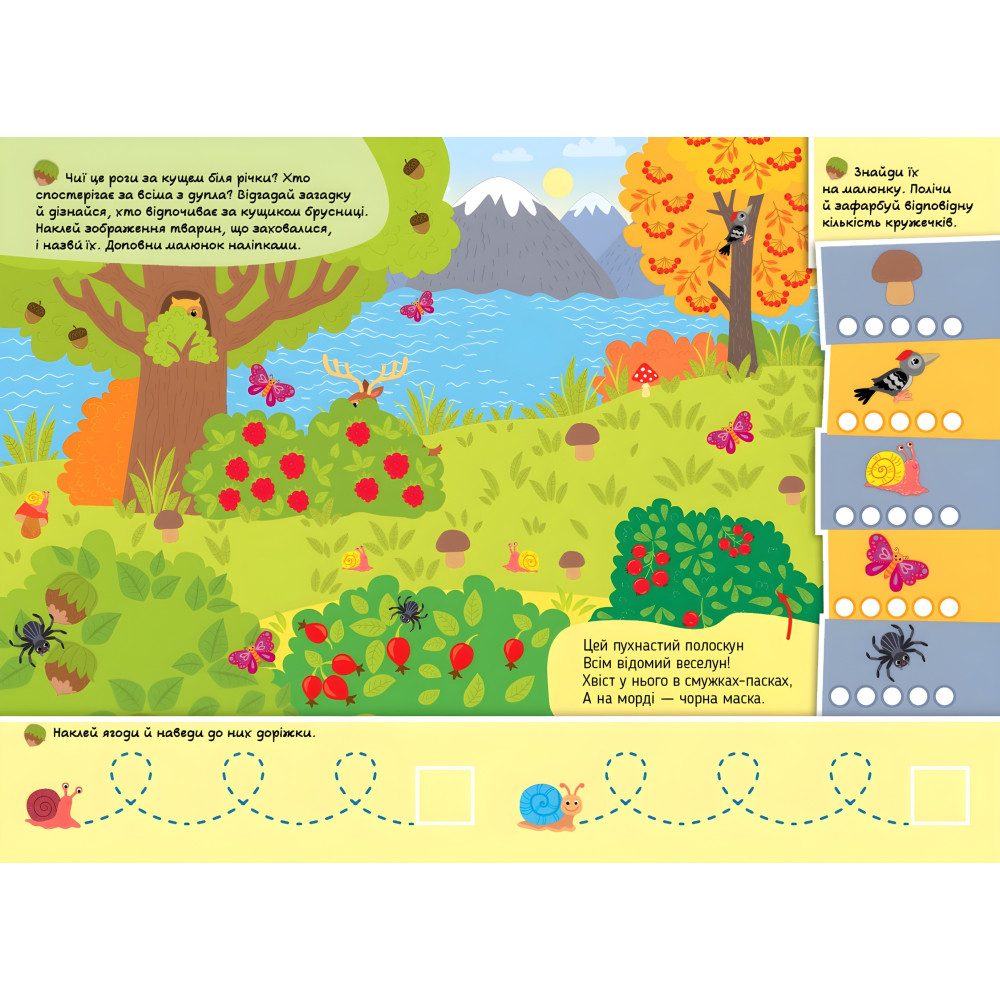 "Яркая книга-игра «Найди меня. В лесу» поможет ребенку вспомнить жителей леса, узнать их по особым внешним приметам и наклеить изображения каждого полностью. На каждой странице есть дополнительные интересные задачи, в которых нужно найти и посчитать разные элементы, отгадать тематические загадки и навести пункты. развить фантазию и креативность.