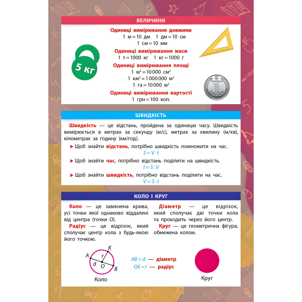 Это издание включает базовый материал 1-4 классов по предмету «Математика» и отвечает требованиям образовательных программ МОН Украины. Пособие позволит быстро восстановить в памяти известные правила, а также легко усвоить новые, а значит, станет отличным помощником для учащихся начальных классов, их родителей и учителей.