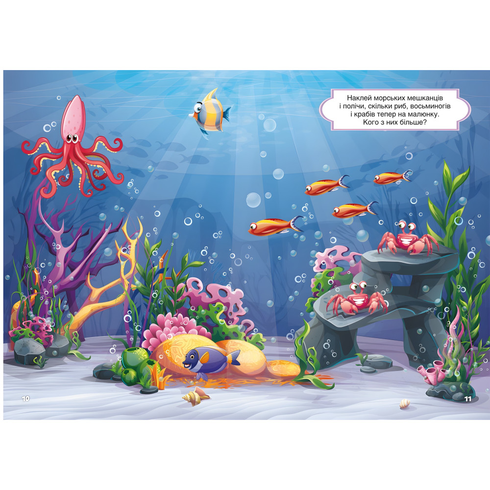 Скорее загляни в нашу книгу, чтобы познакомиться с жителями морей и океанов. Во время путешествия в подводный мир тебя ждет много интересных задач. Выполнить их помогут 36 красочных развивающих наклейок. За подсказку тебе будут давать указанные рядом с ними номера страниц.