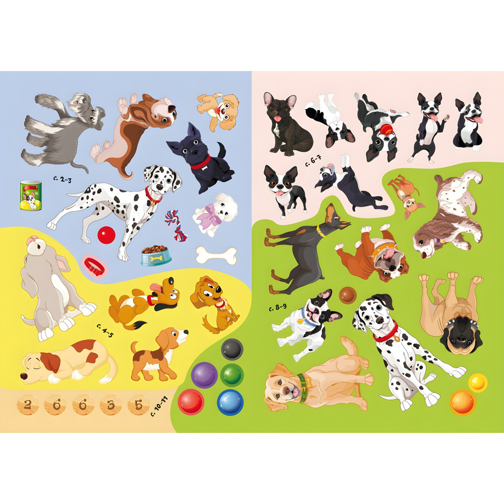 Скорее загляни в нашу книгу, чтобы познакомиться с умными и преданными домашними питомцами — собачками. Тебе предстоит встреча с четвероногими друзьями человека и много интересных задач. Выполнить их помогут 45 красочных развивающих наклейок. За подсказку тебе будут давать указанные рядом с ними номера страниц.