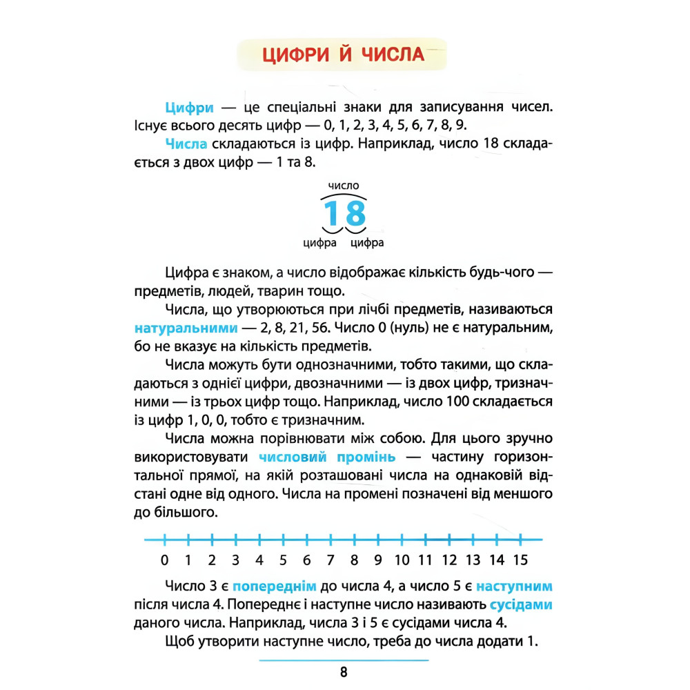 На страницах этого пособия размещены задачи, выполняя которые ребенок закрепит знания о свойствах и отношении предметов, цифрах и числах, геометрических фигурах и величинах, потренируется добавлять и вычитать в пределах 10 и в пределах 100, попрактикуется решать различные задачи. Пособие построено на основе дитиноцентризма, доступности и практической направленности содержания. Издание соответствует типовым образовательным программам НУШ и пригодится как дополнительный тренажер на уроках, а также будет полезным для занятий дома самостоятельно и с родителями. Книга содержит различные задачи, которые будут развивать воображение, мышление и мелкую моторику, стимулировать заинтересованность ребенка в обучении. Издание предназначено для учащихся 1 класса, их родителей и учителей.