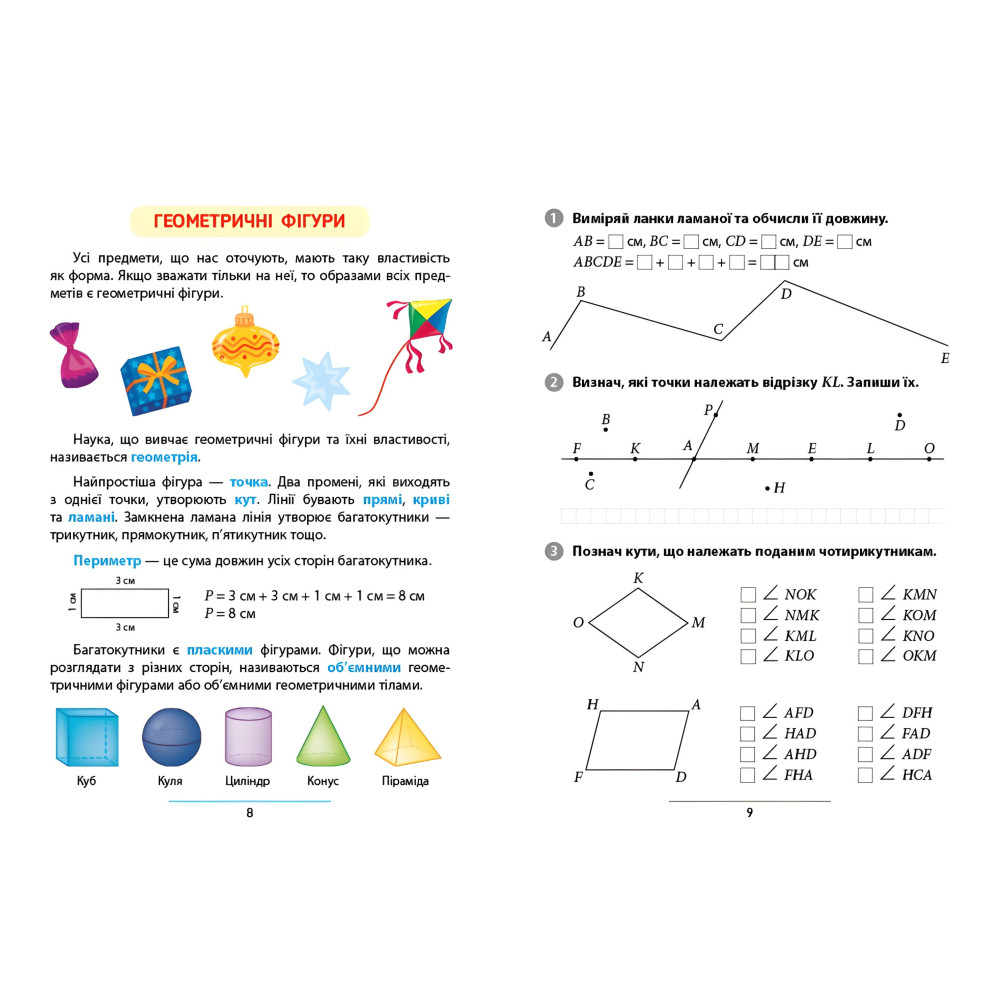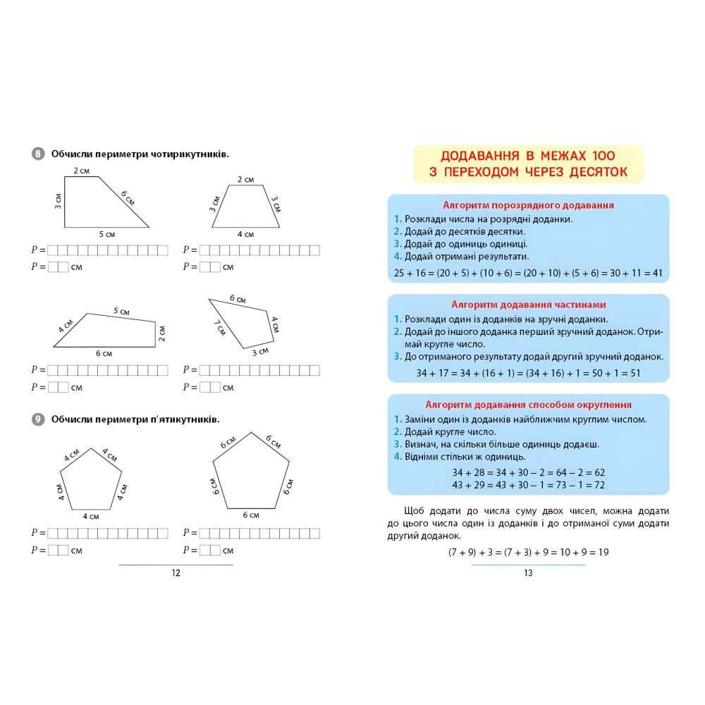 На страницах этого руководства размещены задачи, выполняя которые ребенок закрепит знания о свойствах геометрических фигур и научится находить их периметр, повторит математические действия умножения и деления и упражняется выполнять их, усовершенствует умение добавлять и вычитать в пределах 20 и в пределах 100, попрактикуется решать различные задачи. Пособие построено на основе дитиноцентризма, доступности и практической направленности содержания. Издание соответствует типовым образовательным программам НУШ и пригодится как дополнительный тренажер на уроках, а также будет полезным для занятий дома самостоятельно и с родителями. Книга содержит различные задачи, которые будут развивать воображение, мышление и мелкую моторику, стимулировать заинтересованность ребенка в обучении. Издание предназначено для учащихся 2 класса, их родителей и учителей.