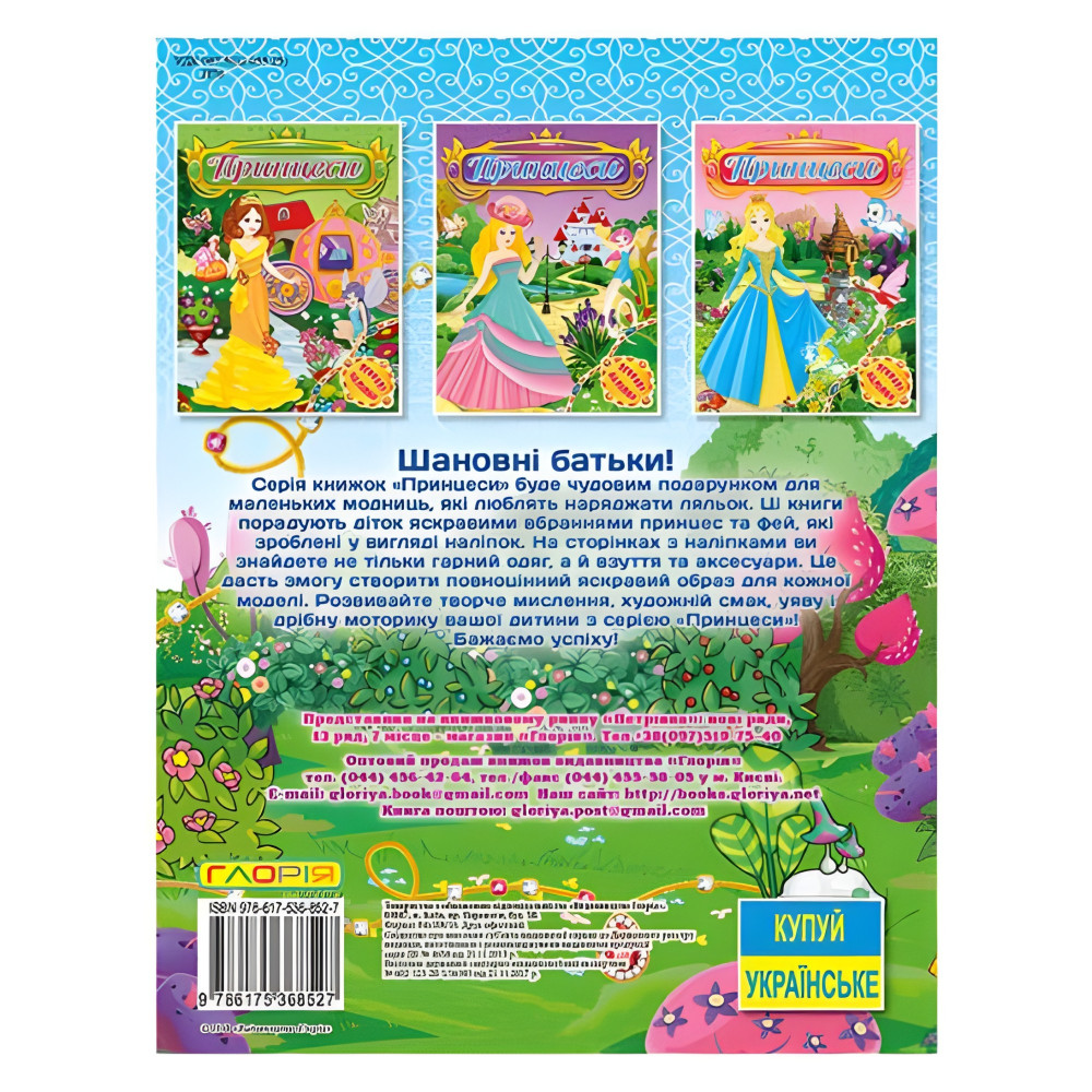 Уважаемые родители! Серия книг «Принцессы» будет отличным подарком для маленьких модниц, любящих наряжать кукол. Эти книги порадуют детей яркими нарядами принцесс и фей, которые сделаны в виде наклеек. На страницах с наклейками вы найдете не только красивую одежду, но и обувь и аксессуары. Это позволит создать полноценный яркий образ каждой модели. Развивайте творческое мышление, художественный вкус, воображение и мелкую моторику вашего ребенка с серией «Принцессы»! Желаем удачи!
