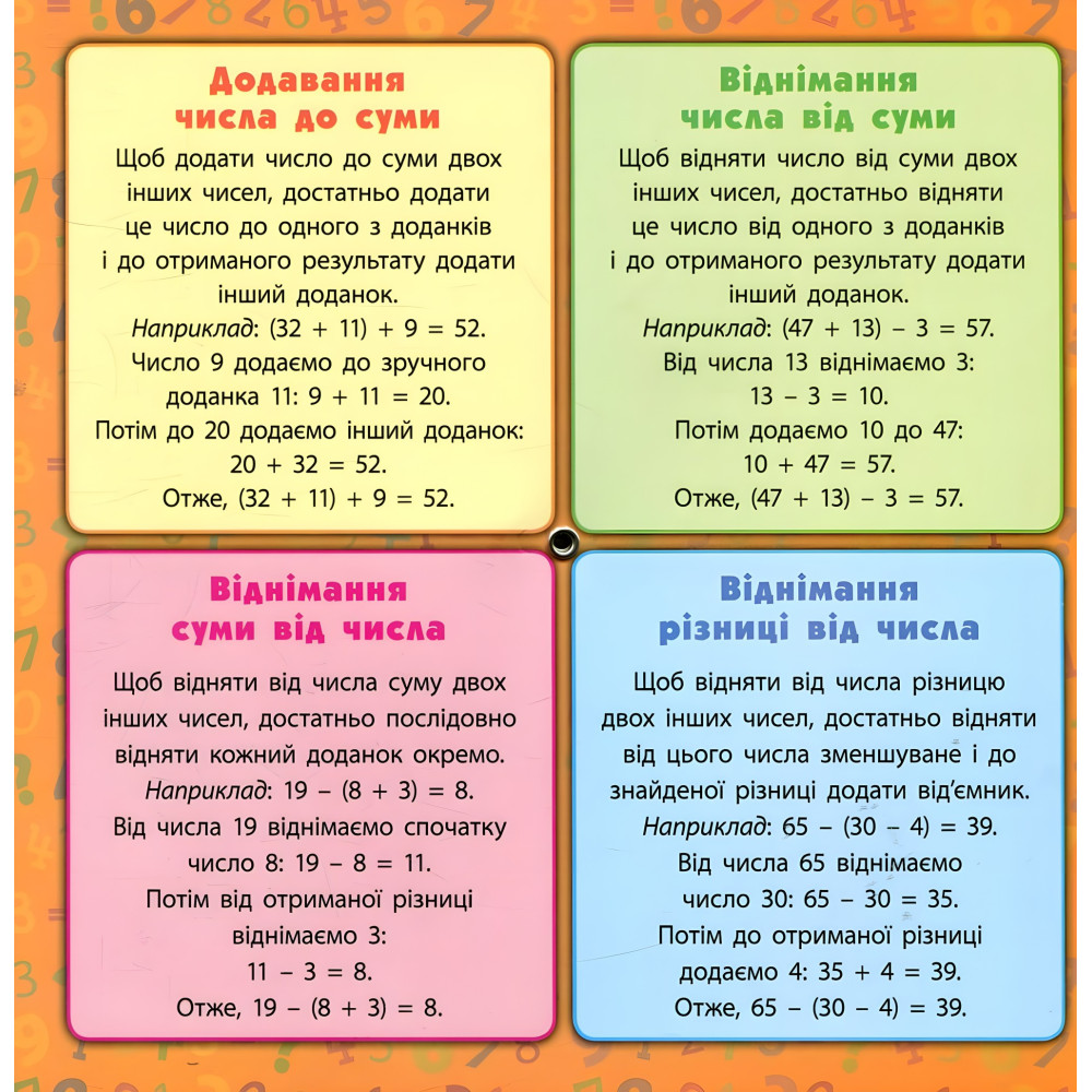 Справочник «Считаем в пределах 100» поможет вашим маленьким школьникам сделать уверенные шаги в изучении математики: изучить правила сложения и вычитания, потренироваться решения связывать примеры. Формат издания будет способствовать развитию внимания, координации движений и мелкой моторики.