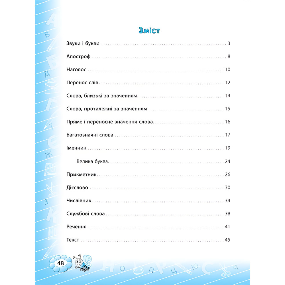 Тренажер украинского языка охватывает базовый материал 2 класса и отвечает требованиям образовательных программ гуманитарной отрасли Новой украинской школы. Систематизированная теория и подобранный практический материал помогут закрепить знания и умения каждой темы, выработать компетентности и хорошо подготовиться к контрольным работам. Издание станет незаменимым помощником для учащихся 2 класса, их родителей и учителей.