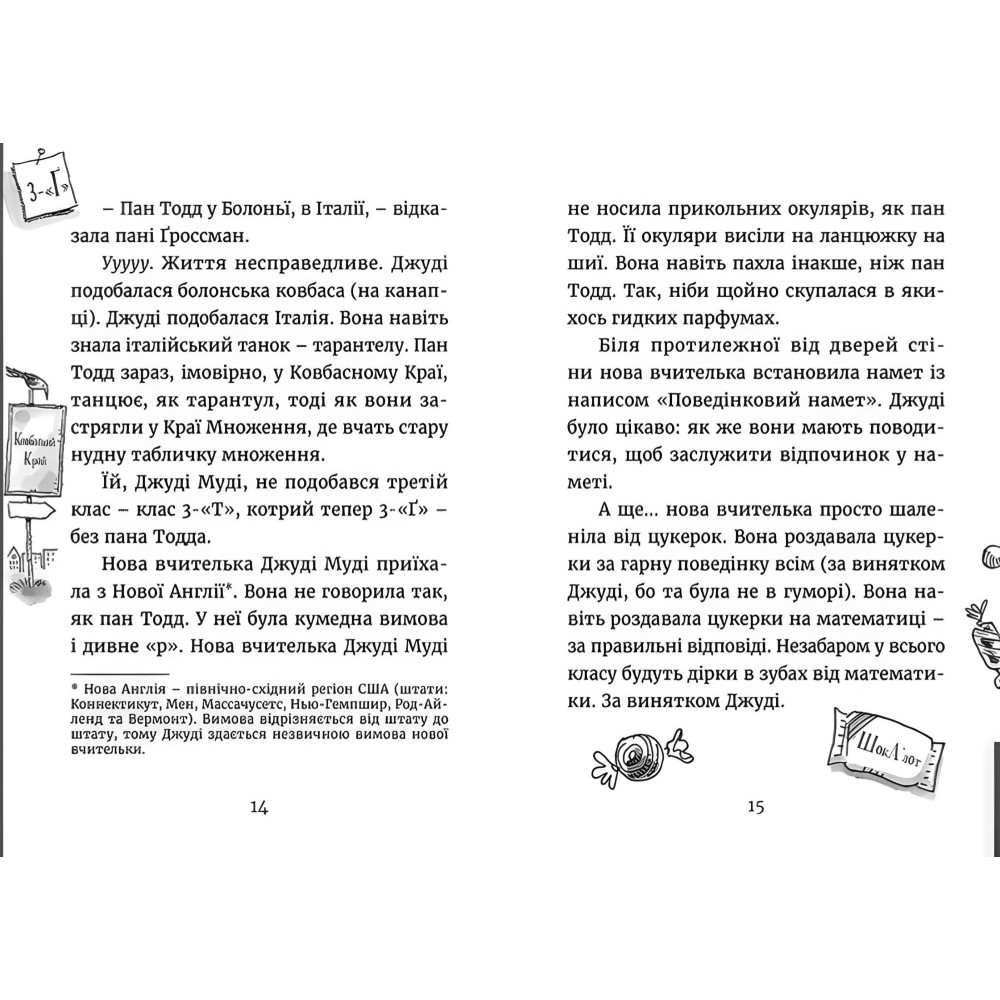 Улюблений вчитель поїхав у відрядження, а вчителька на заміну впровадила нові правила. На математиці вона роздає цукерки – усім, окрім Джуді Муді, тому Джуді потрібно займатися додатково, зі студенткою-репетиторкою. Чи полюбити Джуді математику? Чи здивує пана Тодда, коли він повернеться до школи? Як сприймуть друзі нове захоплення Джуді Муді?