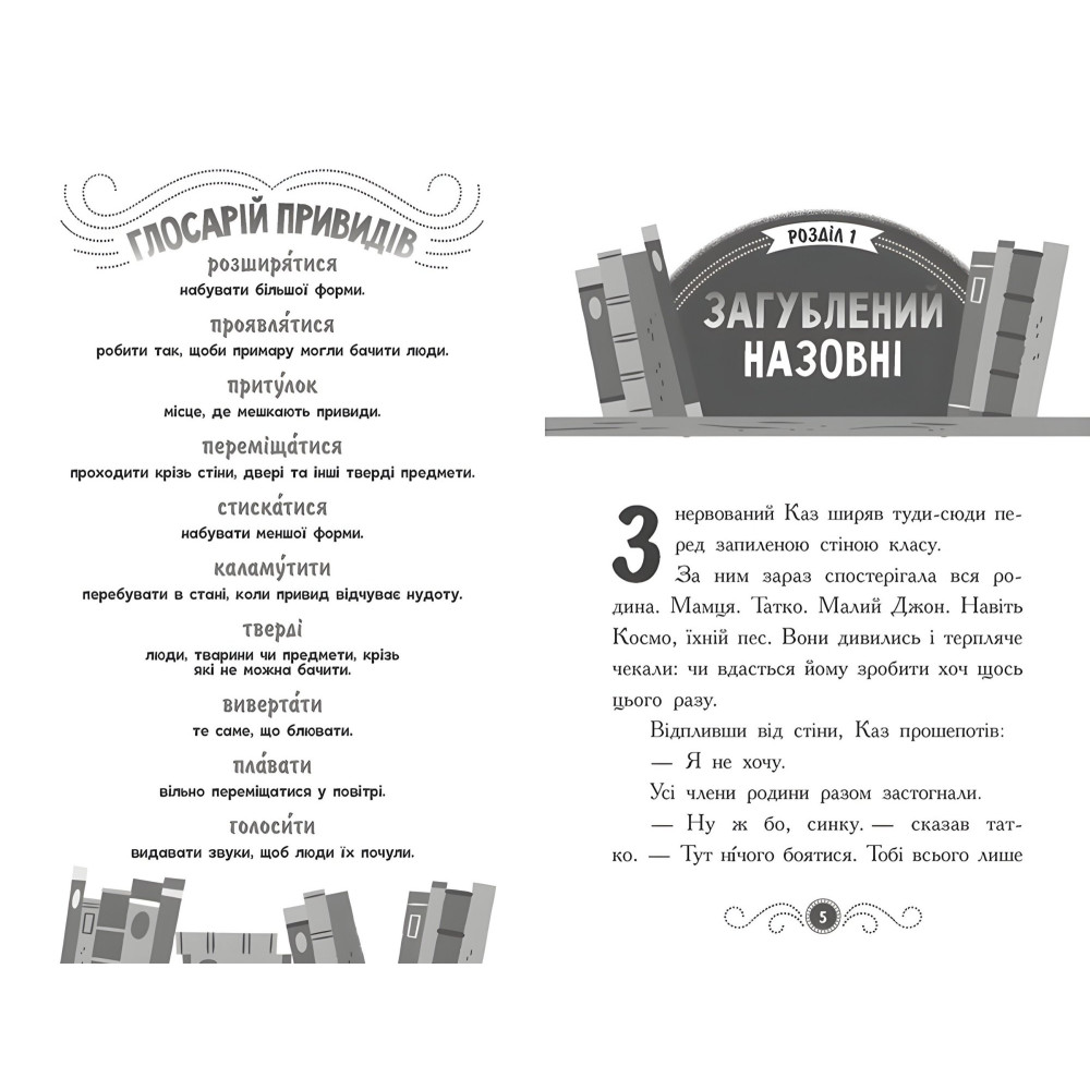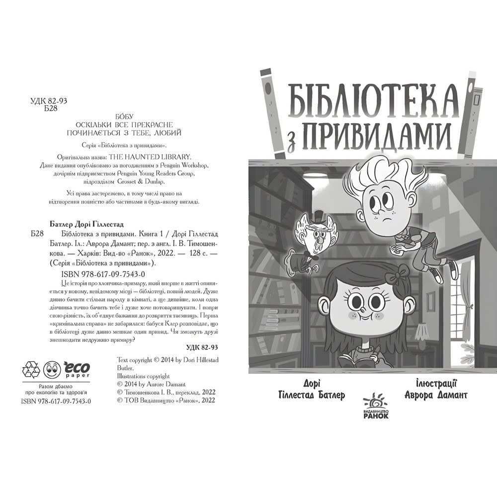 Це історія про хлопчика-примару, який вперше в житті опиняється у новому, невідомому місці – бібліотеці, повній людей. Дуже дивно бачити стільки народу в кімнаті, а ще дивніше, коли одна дівчинка точно бачить тебе і дуже хоче потоваришувати. І попри свою різність, їх об’єднує бажання до розкриття таємниць. Перша «кримінальна справа» не забарилася: бабуся Клер розповідає, що в бібліотеці дуже давно мешкає один привид. Чи зможуть друзі знешкодити недружню примару?