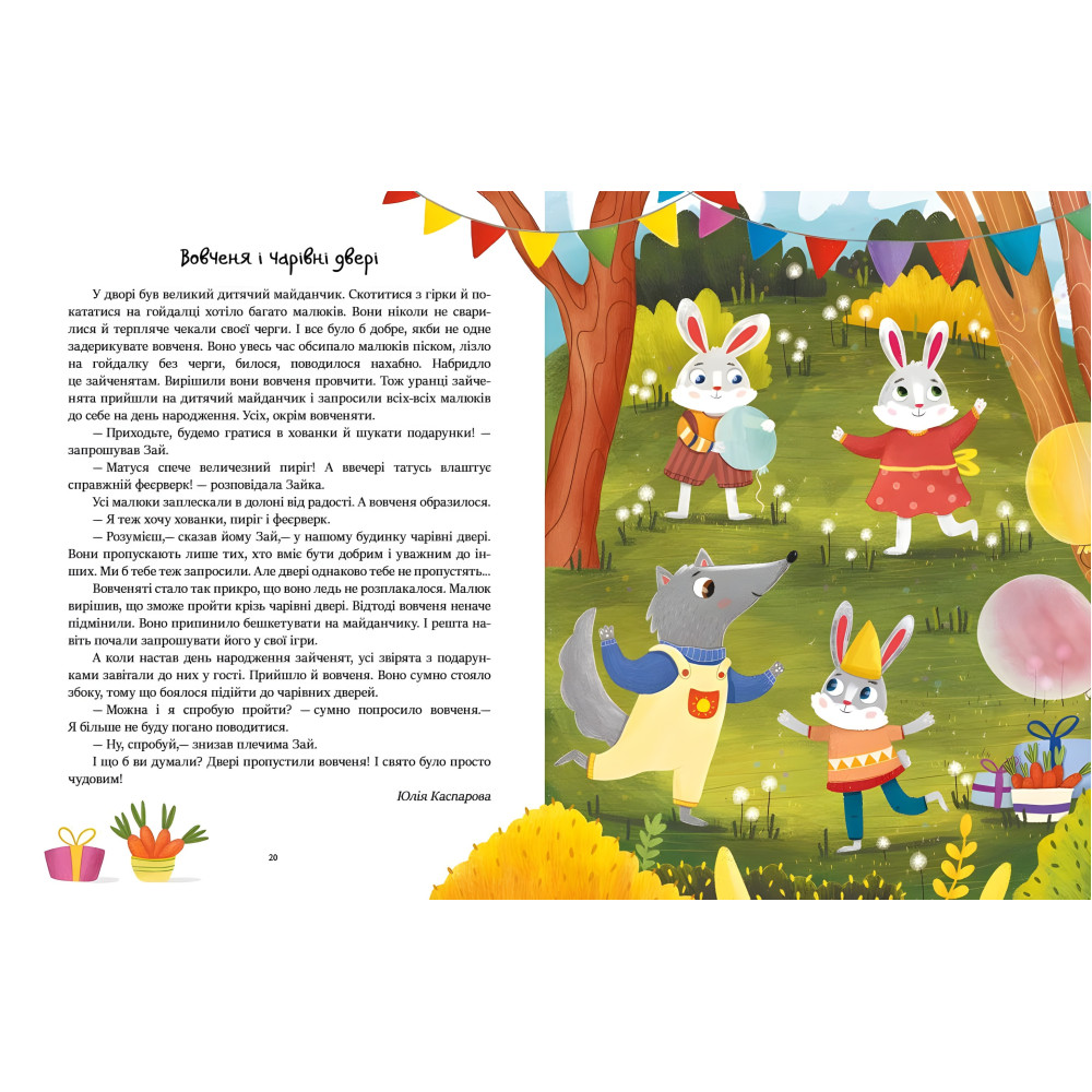 У книзі зібрані щонайдобріші історії, які стануть у пригоді саме для вечірнього читання. Казки короткі, кожну можна прочитати лише за п'ять хвилин. Це допоможе малюку дослухати історію до кінця й не втратити увагу. Можна читати по одній казці щовечора — тоді книги вам вистачить на цілий місяць! А коли закінчите, починайте спочатку.