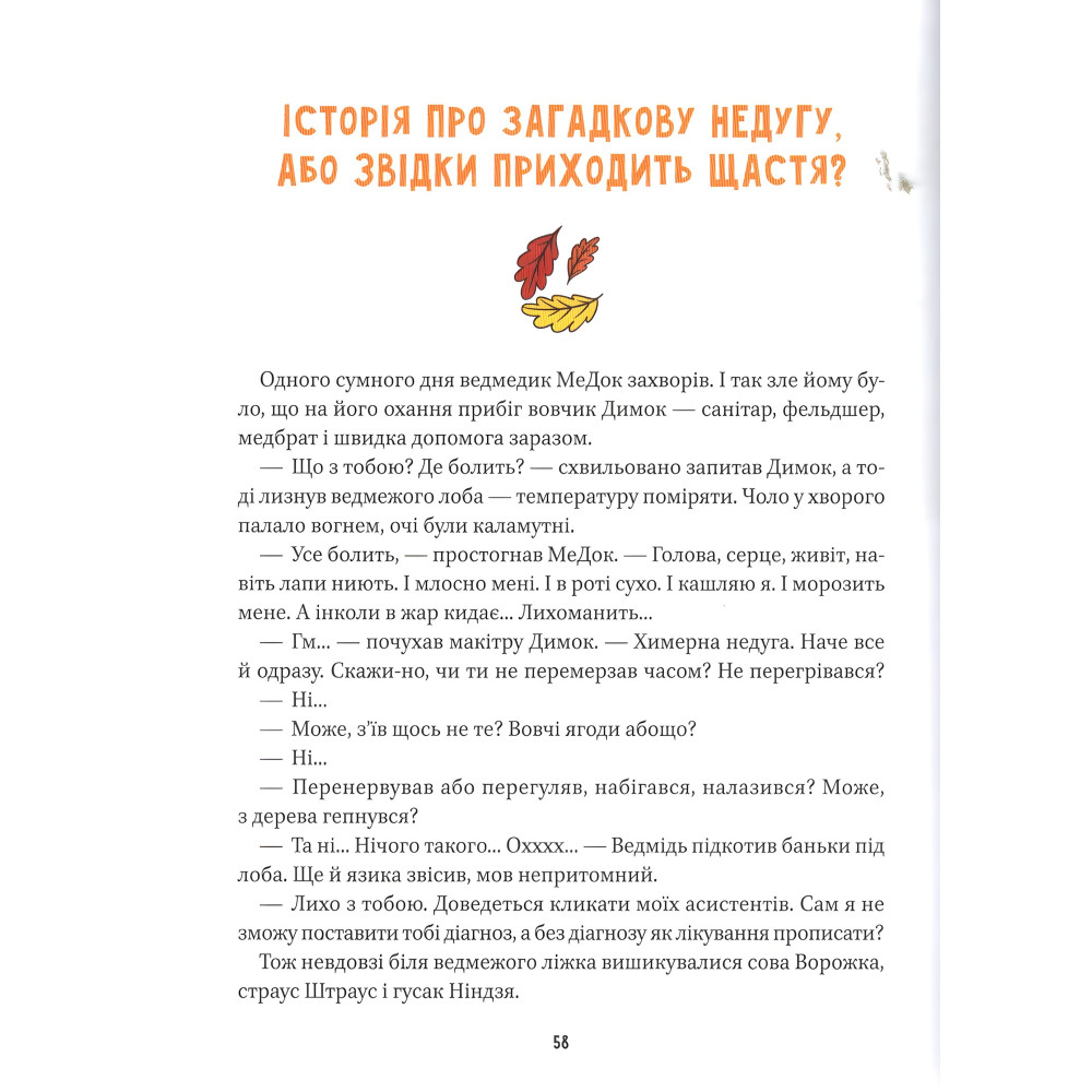 Чому бегемот сумує, а лев невпинно ридає ридма? Чий химерний голос чує тигр? Що можна знайти, шукаючи піратські скарби? У кого є чарівні чорнила і яку вони мають силу? На що здатен заєць у вовчій шкурі? Як полагодити зламаного півня? У який спосіб визначити справжнього друга?.. Ці й багато інших запитань дуже переймають мешканців Дивовижного Зоопарку — адже кожному з них так кортить спіймати власне Щастя! От тільки де саме воно ховається? Певно, безліч дітлахів ставлять батькам таке питання. Тож якщо бажаєте допомогти своєму маленькому дослідникові розібратись у власних емоціях і визначити найщасливіші — пропонуємо вирушити в цікаву мандрівку разом із героями цієї книжки.
