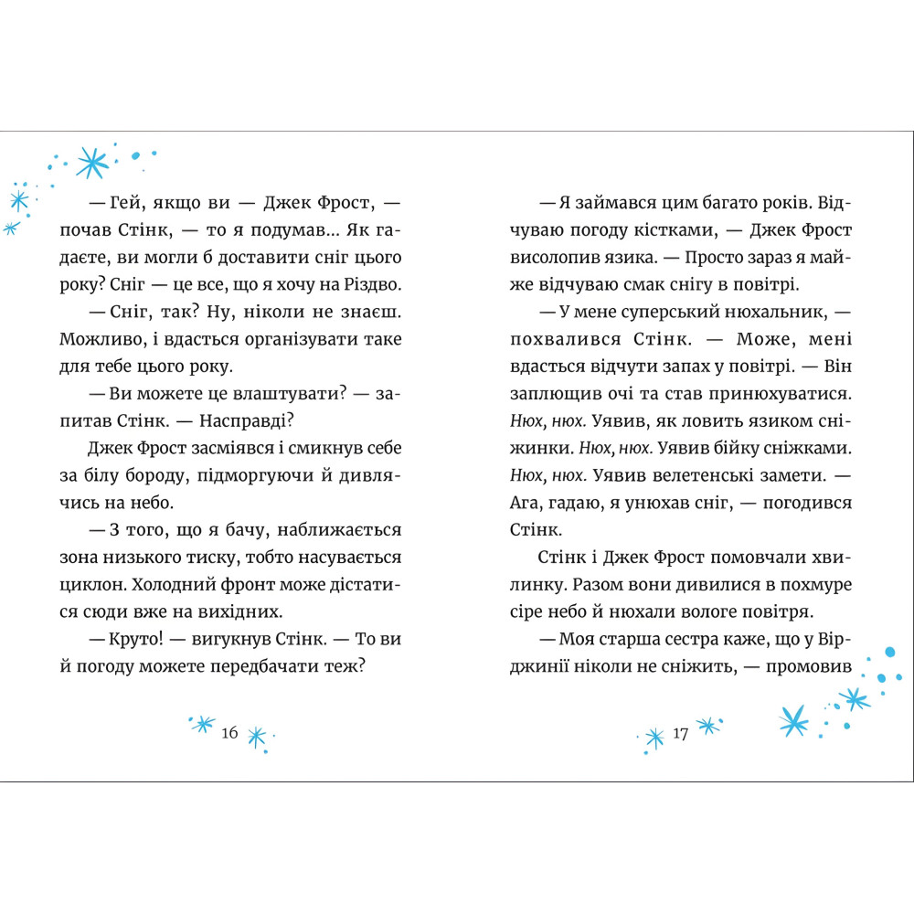 Пригоди невгамовних Джуді Муді та Стінка тривають. Наближається пора святих веселят, тобто веселих свят! Джуді пише десятикілометровий список подарунків, а Стінк мріє лише про одне: сніг. Та щось не схоже, що цього року у штаті Вірджинія сніжитиме. Утім, зі снігом чи без, сестра і брат вигадують усе нові й нові бешкетні витівки!