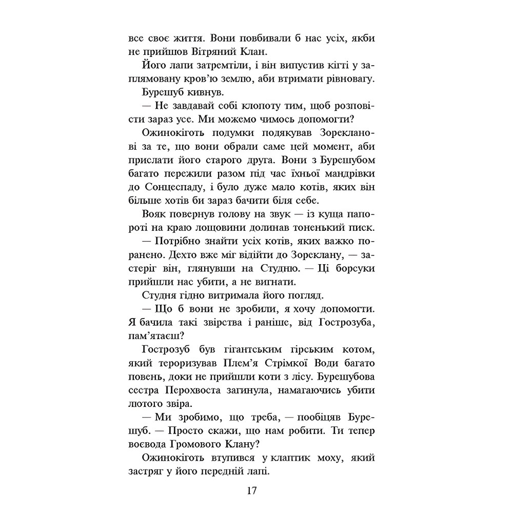 Шоста книга іншого циклу Нове пророцтво серії Коті Вояки.Ожинокіготь розривається між двома світами реальним і потойбічним, де блукає його батько Тигрозір. З кожним днем йому все важче приховувати свою таємницю і притлумлювати жагу до влади, яку так вміло розпалюють в ньому батько і брат. Зрештою, йому таки випадає шанс отримати бажане. Та чи варті воно такої ціни? Чи розуміє Ожинокіготь, що від його вибору залежить доля усіх лісових котів?