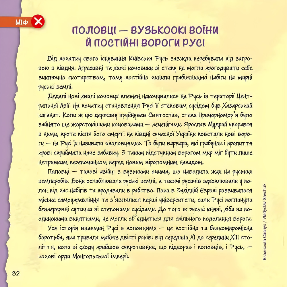 Історія сповнена міфів та фейків. Якісь із них виникли випадково, інші були створені, щоб заперечити існування українців як окремої нації. Пропагандистська машина працювала вправно, але настав час дізнатися справжню історію, яка захопить та зруйнує застиглий набір стереотипів. У книжці ви прочитаєте, чому запорозькі козаки цікавіші за спрощений образ селян-утікачів; чи правда, що паризький аеропорт названий на честь українця; чи існує золото Полуботка; хто ж створив Велесову книгу і багато іншого! 33 спростування, які змінять ваш погляд на історію. Чому варто читати: Наведені у книзі спростування існуючих міфів дають змогу не лише більш адекватно зрозуміти історичний шлях України крізь століття, але й прищепити смак до самого процесу наукового пошуку, перевірки інформації та співставлення фактів.