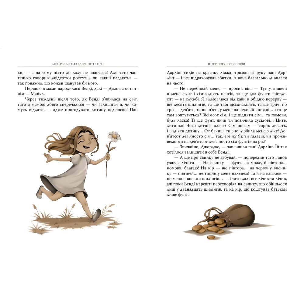 Казкову повість Джеймса Метью Баррі «Пітер Пен» знають і люблять не лише у Великій Британії, а й в Україні. Читаючи її, діти разом із Пітером, хлопчиком, який не хоче дорослішати, Венді та її братами літатимуть із феями, плаватимуть із русалками, дружитимуть з індіанцями, боротимуться з піратами та переживатимуть ще чимало цікавих пригод на острові Небувай.