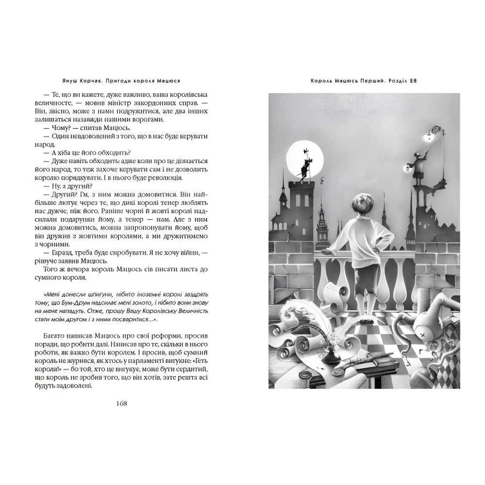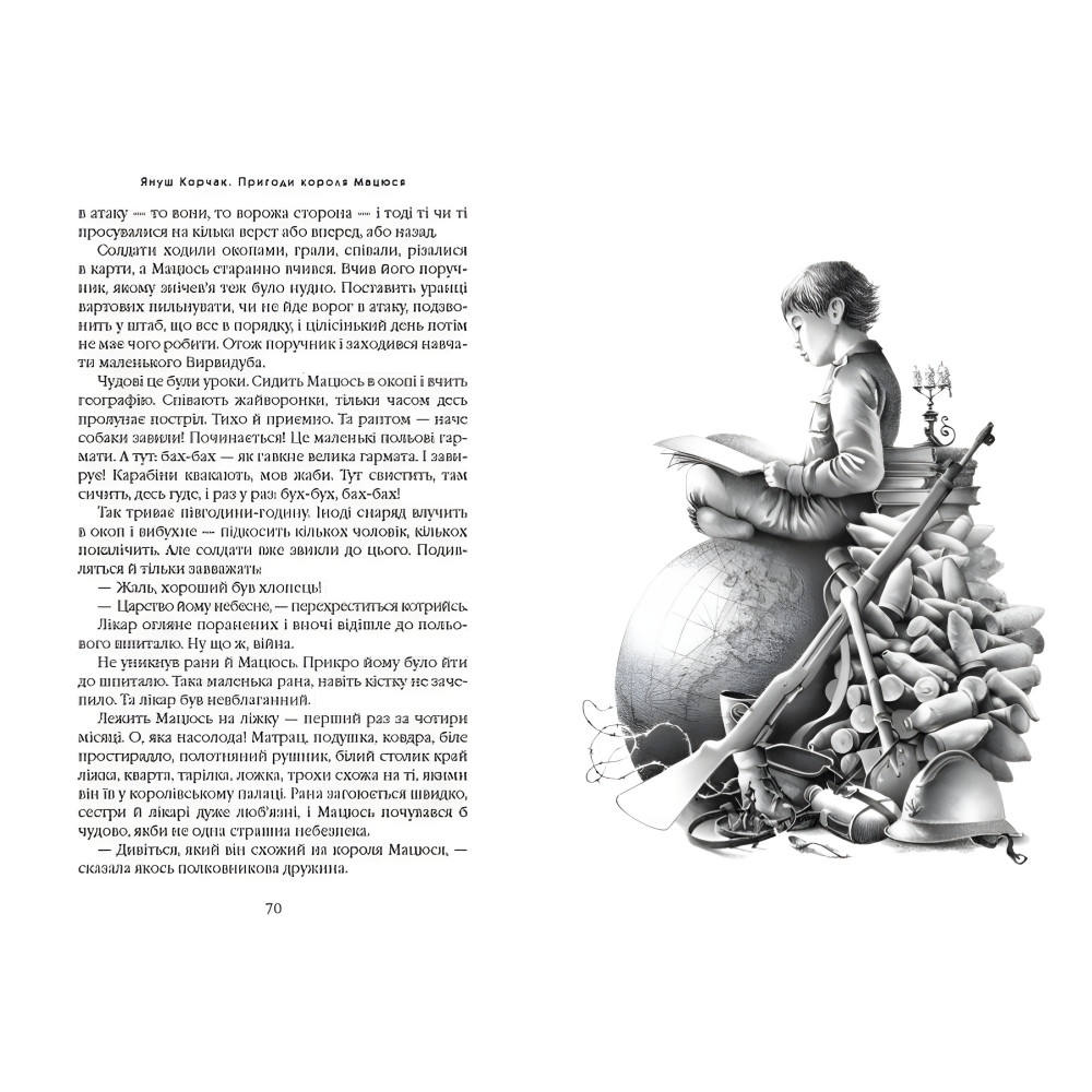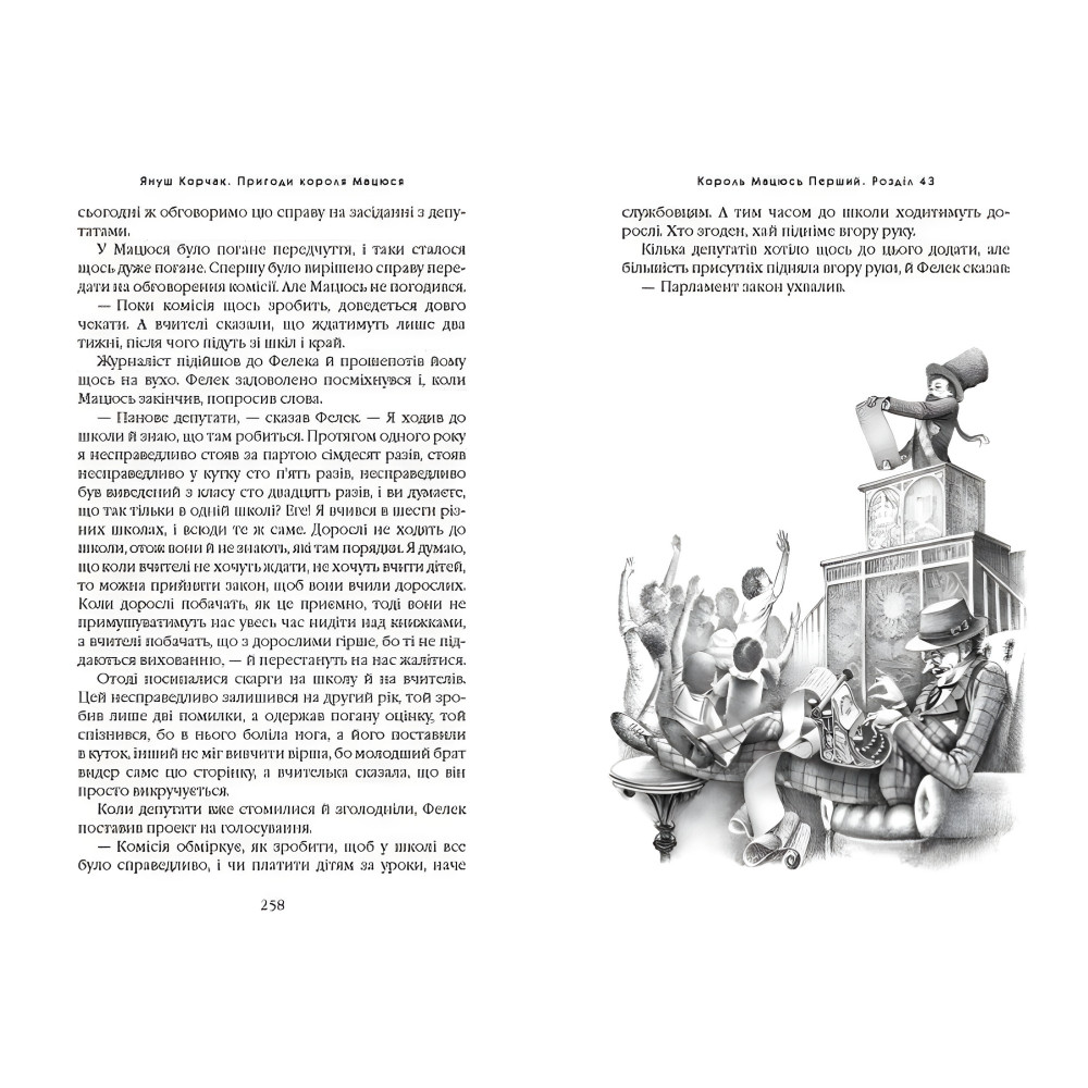 Незвичайні і дивовижні пригоди малолітнього короля Мацюся. Малий Мацюсь ще не вмів ні читати, ні писати, коли після смерті батька йому довелося сісти на трон. Якби не Фелек, простий кмітливий хлопець, Мацюсь так ніколи й не довідався б, що багато дітей його королівства живуть дуже бідно. Щоб поліпшити їхнє життя, Мацюсь створив дитячий парламент. Король-реформатор Мацюсь вирішив припинити всі війни, і це, звісно, не сподобалося іншим королям... Повість «Пригоди короля Мацюся» — один із найважливіших творів світової літератури ХХ століття. Трагічна смерть самого Януша Корчака стала символом найвищої відданості ідеалам людяності й гідності: разом з вихованцями свого сирітського притулку він пішов у фашистську газові камеру, відмовившись від особистої можливості уникнути смерті.