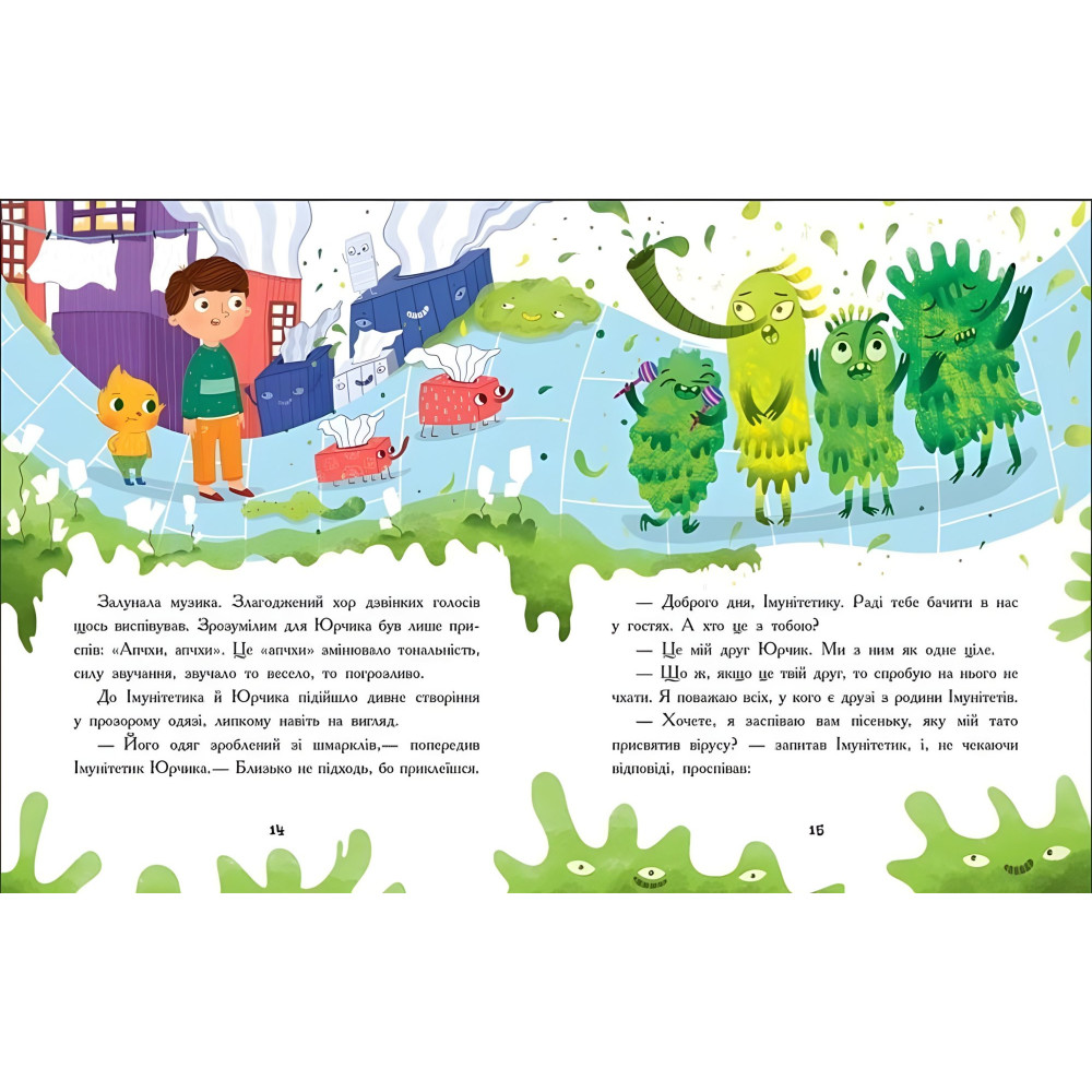 Жив собі хлопчик Юрчик, допомагав доглядати братика, складав конструктор з татом і любив тихцем дивитися мультики на планшеті. Та уявіть собі, одного дня він несподівано опинився в Країні Мікробів! Разом з новим другом Імунітетиком хлопчик на власні очі побачить мешканців цієї незвичайної країни: апчихуньчиків, кахунчиків, фей діареї та лихого Коронавіруса. Чи вдасться друзям повернутися з цієї подорожі здоровими? Як можна запобігти хворобам, уберегти здоров’я й покращити імунітет? Відповіді на ці й інші запитання – усередині книжки!
