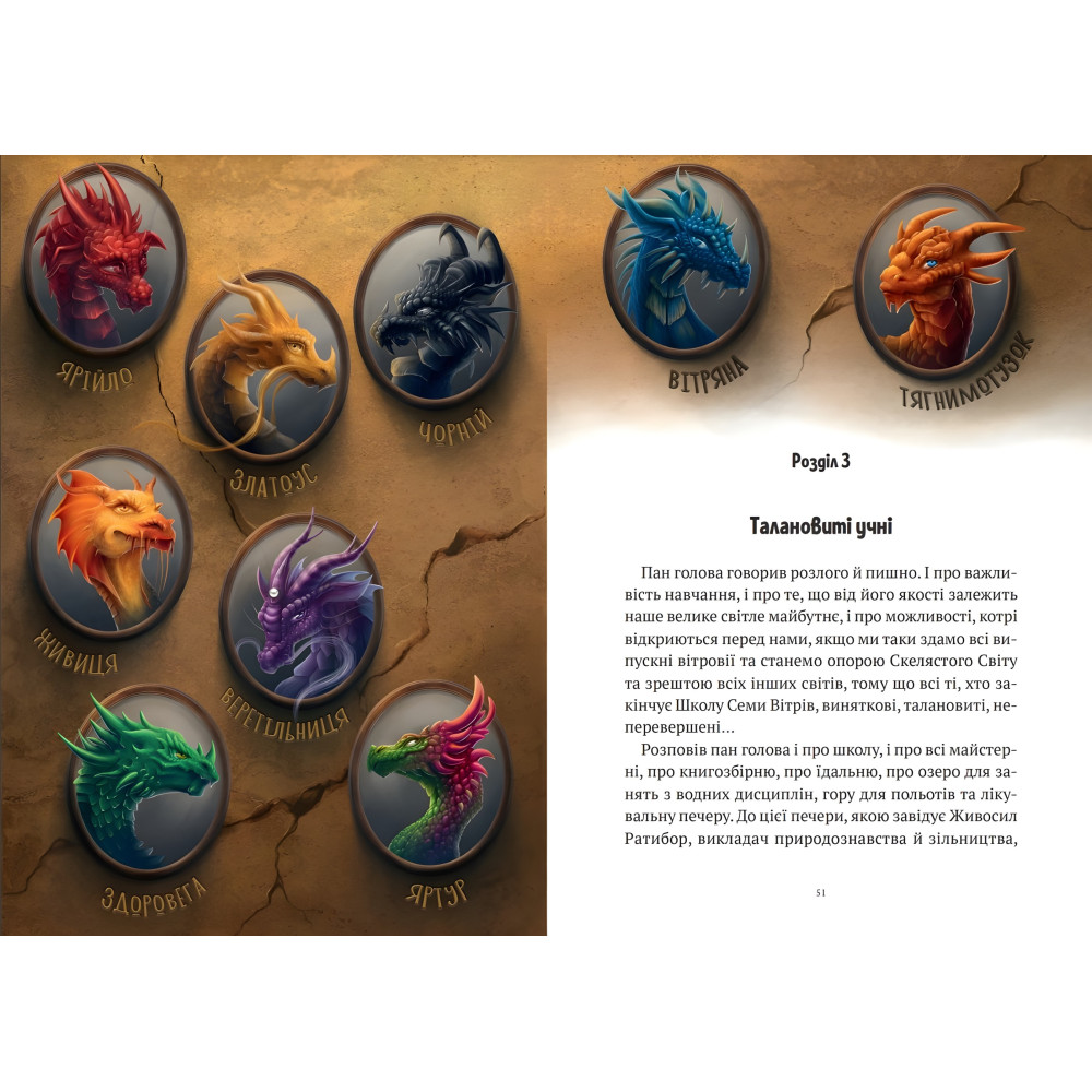 Пригода з порятунком Райського саду вже стала легендою. Але першорічки Школи Семи Вітрів встряють у нову оказію. Брати Товчикамені — вогняно-червоний Ярійло, золотавоголовий Златоус та чорнопикий Чорній — зустрічають Вітряну. Ця синя драконка — напівлюдина, і має вона особливий дар, на який уже накинув оком дехто з учителів. Та мало кому відомо: Школа Семи Вітрів колись зазнала химерної слави. Багато років тому дракон Білотур домігся, щоб таланти відкривали тільки чистокровним зміям і драконам. Напівкровки ж — це прикра помилка природи, і їм не місце в цьому навчальному закладі. І ось темне минуле знову пнеться назовні. Через свою напівкровність та могутній дар Вітряна опиняється в небезпеці. Брати Товчикамені кидаються їй на допомогу. Та от лихо: їхнє життя тепер також під загрозою…