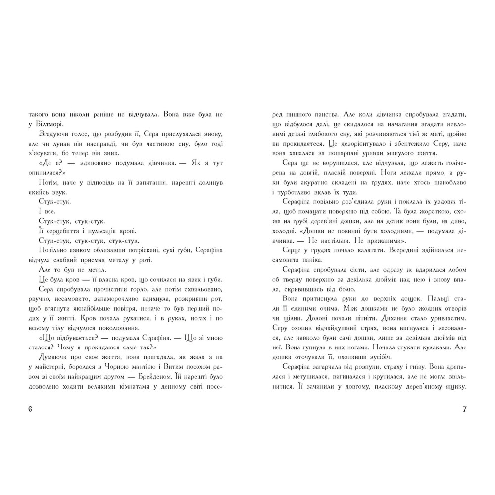 Серафіна прокидається у темному місці, у подертому одязі та із загоєними ранами. Щось трапилося з нею, проте Сірка не пам'ятає що саме. Блукаючи лісом, дівчинка помічає, що ліс швидко змінюється: річки піднімаються, бурі не вщухають, а повені наносять неабияких збитків. Вона знає: до цього причетна чорна магія. Відтак вона має попередити всіх і зупинити ті, що наближається до Білтмора. Та це виявляється не так вже й легко... Видання надруковано за кошти гранту інституційної підтримки
