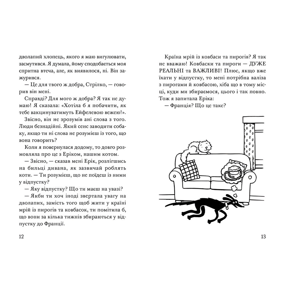 Пригоди невгамовної Стрілки тривають! На неї та її дволапих господарів чекає подорож на відпочинок до сонячної Франції. Та найперше їй доведеться витримати заштрик Ейфелевою вежею й уроки дресирування. У Франції Стрілка знайомиться з бандою піратів і паном Красенем, а ще береться за розслідування крадіжки. Чи вдасться їй розгадати таємницю зникнення собачої миски, ключок для гольфу, причепа і навіть цілого фургона?! Читайте в нових пригодах Ракети на чотирьох лапах.