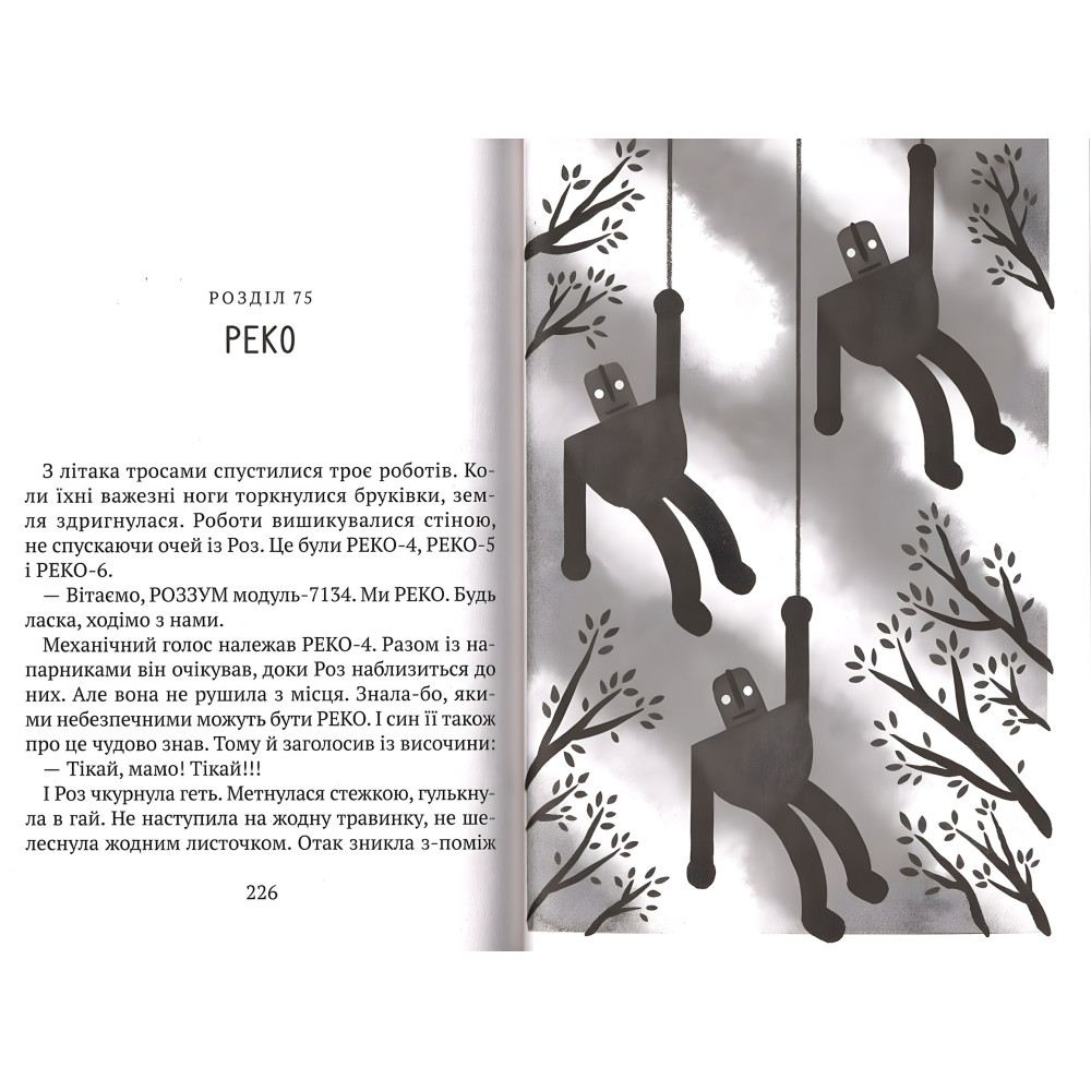 Пригоди лише починаються... Ця дивовижна книжка є продовженням історії про унікальну роботку на ім'я Троянд, яка навчилася мови тварин і сталаматусею для гусеняти Яснодзьобика. Щойно Троянд призвичаїлася до життя на дикому острові, як опинилася в пастці на фермі, що належить родині Шерифів. На неї знов чекають карколомні випробування: битва з торнадо й напад вовчої зграї. А ще вона знаходить нових друзів. Троянд мріє повернутися на рідний острів, тож вирушає в небезпечну мандрівку. Разом із Яснодзьобикомвона долає лісові хащі, високі гори й морські простори. Проте в шумного місті роботка стикається з найстрашнішою загрозою — людьми...Чи досягне Троянд своєї мети? Чи здобуде омріяну волю?
