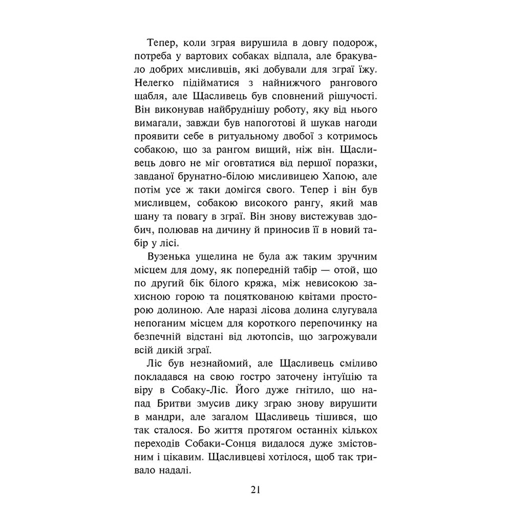 Четверта книга всесвітньовідомої серії «Зграя». Для змішаної зграї диких і повідкових собак стало зрозуміло: тепер їхнє виживання залежить від того, як вони миритимуться одне з одним і чи навчаться діяти злагоджено. Звісно, конфліктів не уникнути, адже кожен пес особливий. Попри все їм щодня треба разом полювати й шукати укриття там, де все аж кишить небезпекою. Не ліпший час натрапити на чужу зграю, але… Може, це шанс здобути підтримку? Чи таки ще одне небезпечне випробування, яке переживуть не всі? Чому варто читати: Серія пригодницьких романів-фентезі, які читають підлітки та їхні батьки. Відкрий для себе ще одну захопливу фентезійну серію про тварин «Зграя» від Ерін Гантер — автора світового бестселера «Коти-вояки». Настав час собакам панувати в дикій природі. Автор: Серія «Зграя» створена британськими письменницями під загальним псевдонімом Ерін Гантер. Серія видається у Великій Британії з 2012 року і дотепер.