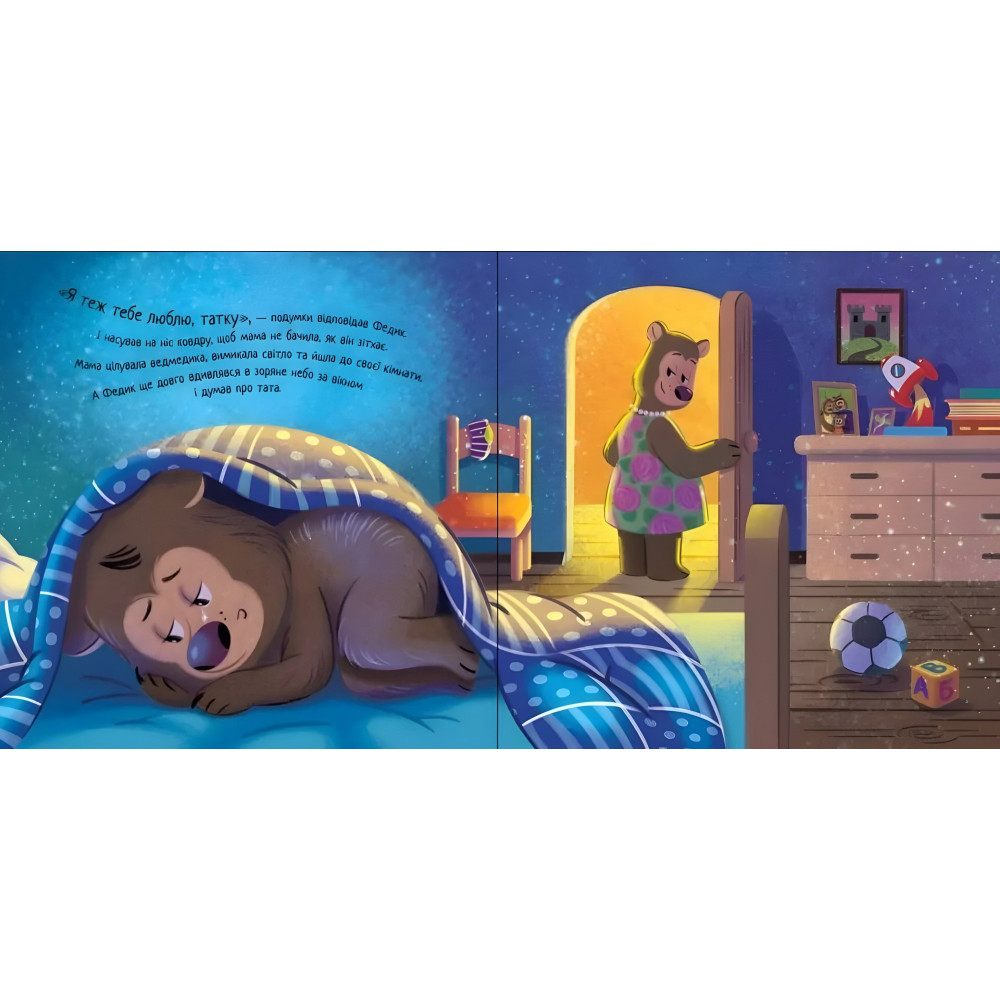 Одного дня тато ведмедика Федика поїхав у важливих справах на Схід. З тих пір малий всім серцем мріє бути поруч з татком, щоб той відчув його любов і тепло. Як же це зробити, якщо Федик навіть не вміє писати і не може відправити татові листа? Але для того, щоб сказати, як сильно ти когось любиш, не завжди потрібні слова.
