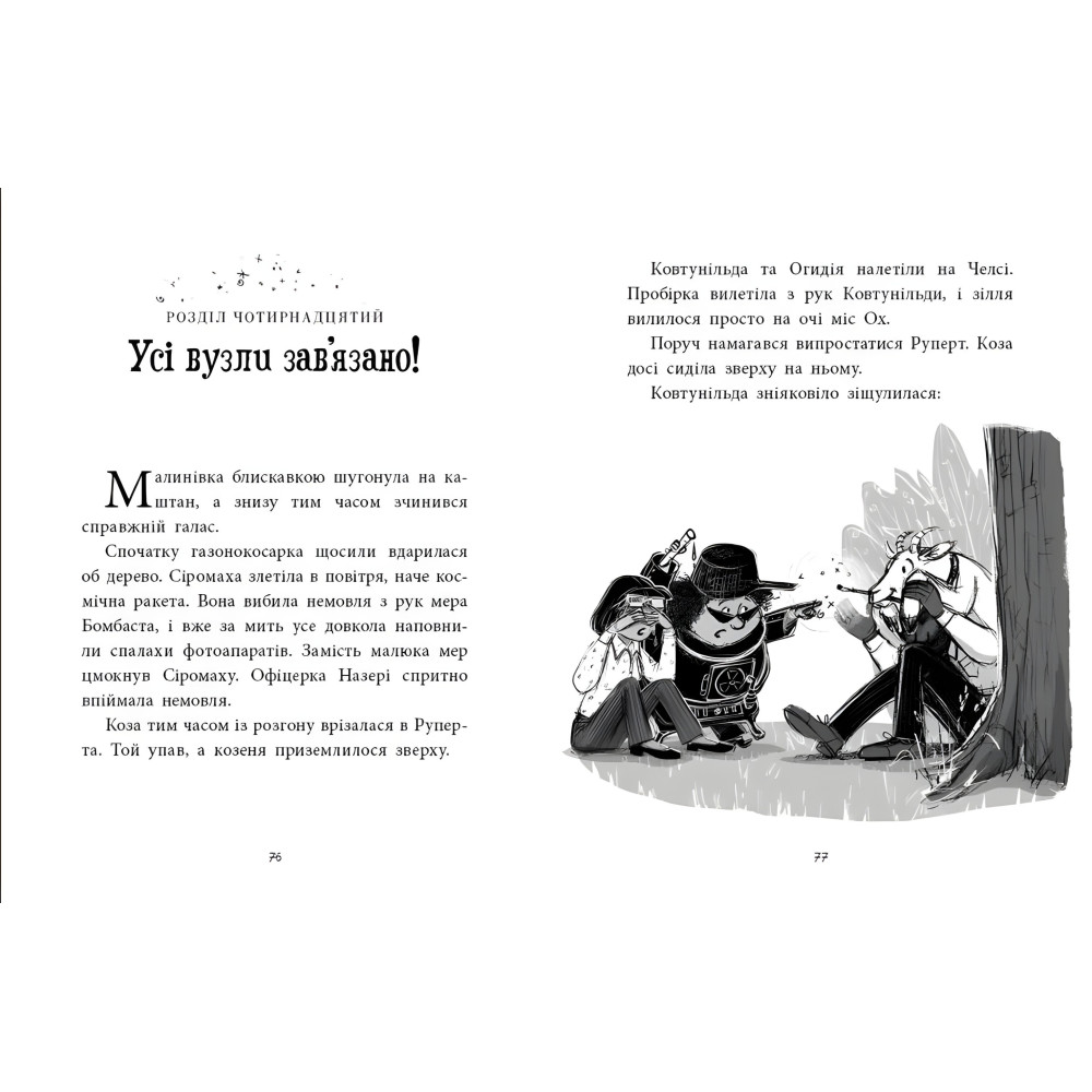 Зустрічайте другу книгу смішної детективної серії «Агенція дивних сестер»! Сестри-відьми-детективки мають халепу. Містяни не приходять до їхньої крамнички (й агенції!), бо вважають сестер надто дивними. Але це не зупинить наших героїнь! Адже хтось зламав гойдалку, яку любило все містечко, тож детективки вже йдуть по сліду зловмисника... Книжка «Малинівка, стрічка та газонокосарка» сповнена курйозів, жартів і спонукає дітей до прийняття себе та відкритості до світу.